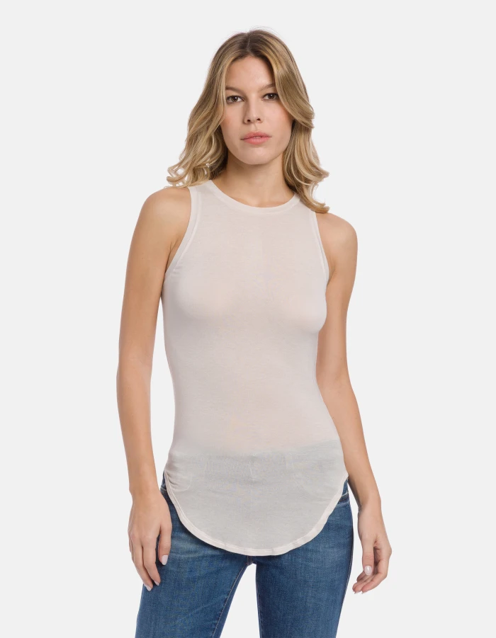 Slim-fit crew-neck vest with rounded hem. Interlock. Dondup logo. Made in Italy