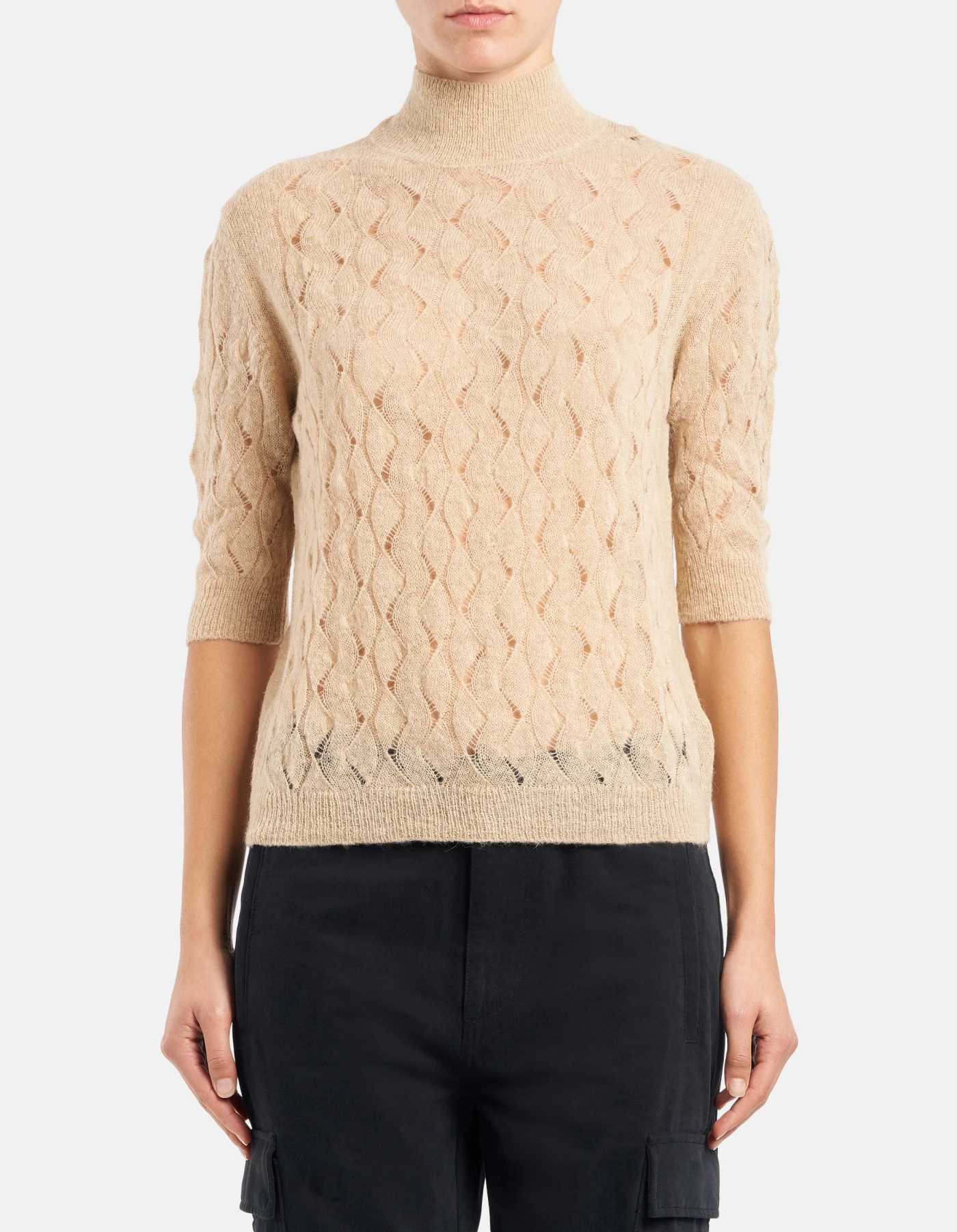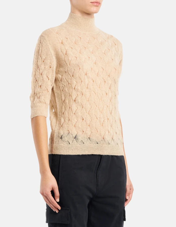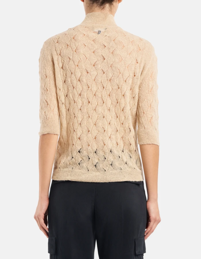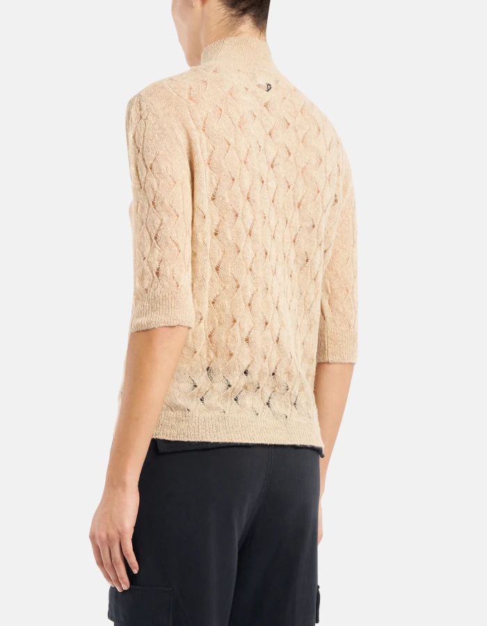 Slim-fit polo neck jumper in openwork wool