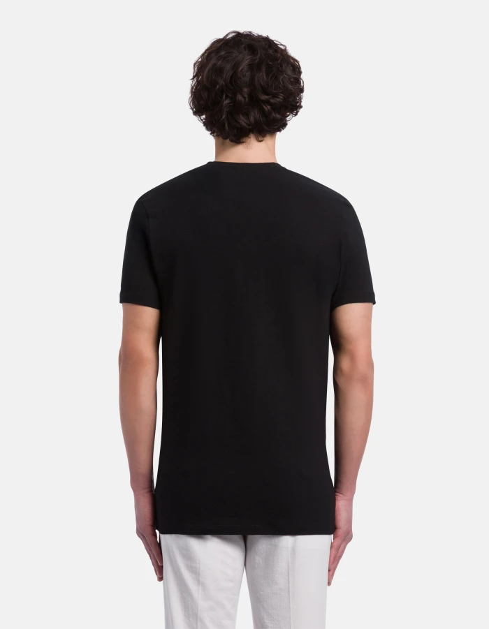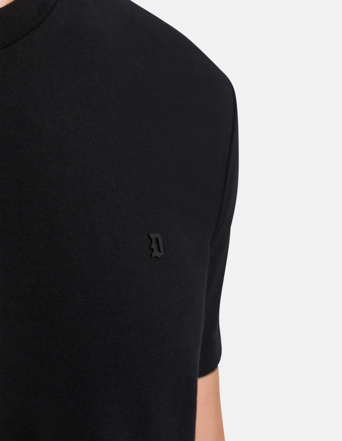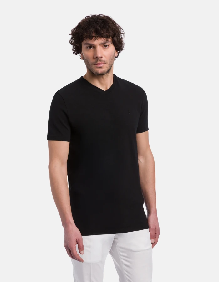 Slim-fit V-neck T-shirt with short sleeves and D logo appliqué on the left chest. Stretch jersey. Dondup logo. Made in Italy