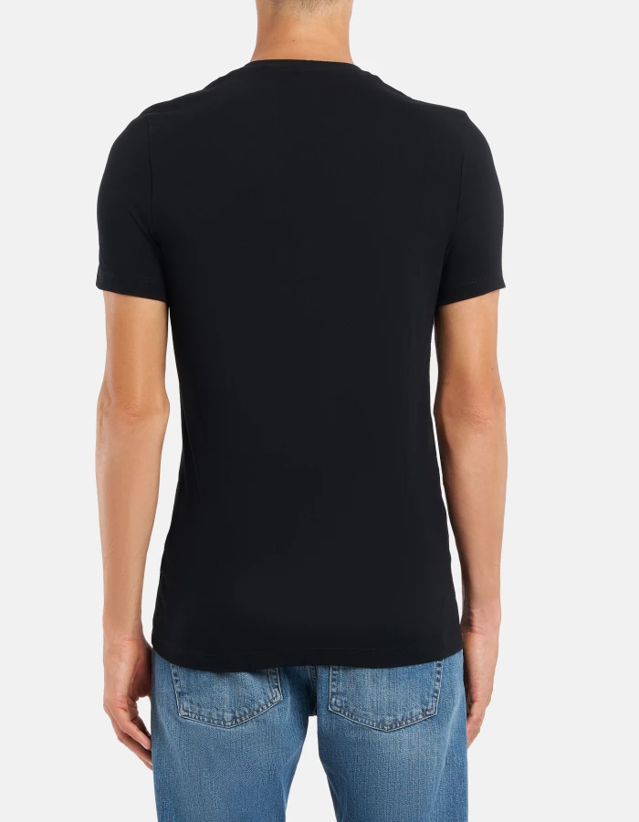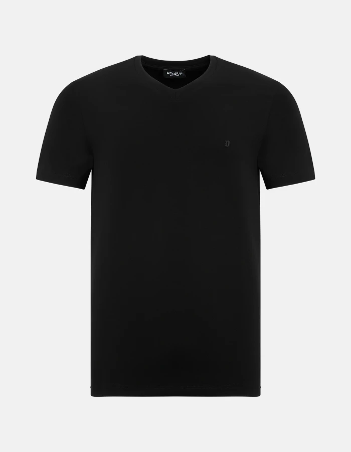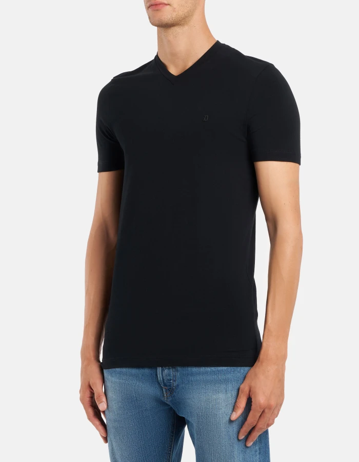 Slim-fit V-neck T-shirt with short sleeves and D logo applique on the chest. Stretch jersey. Dondup logo. Made in Italy