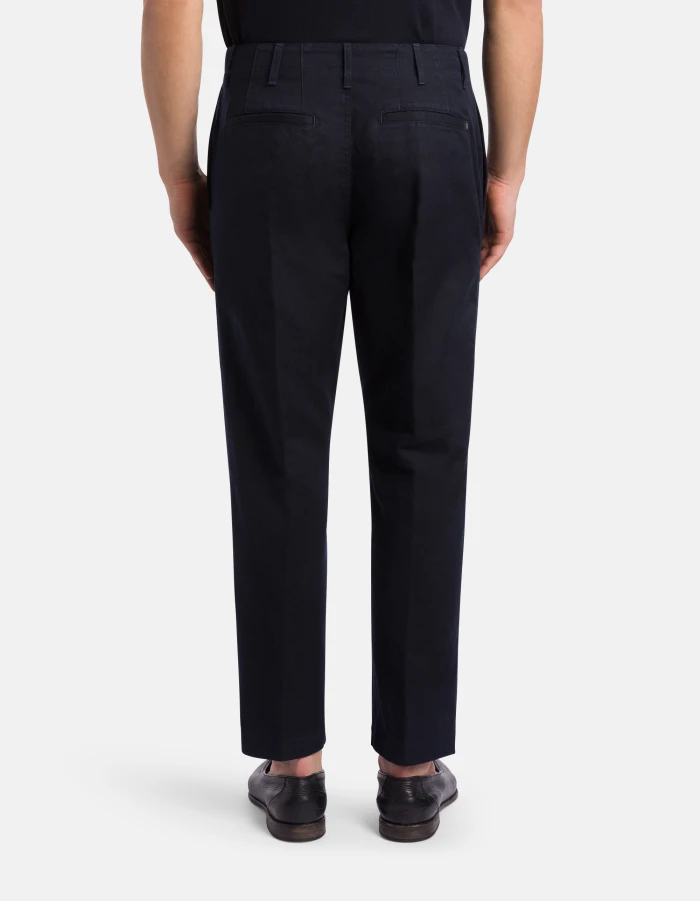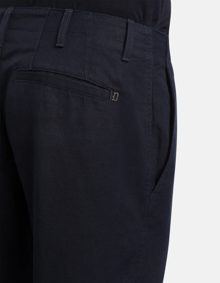 Zyan carrot-cut chinos, regular waist, welt pockets at the back. Plain-weave cotton and linen. Dondup logo. Made in Italy