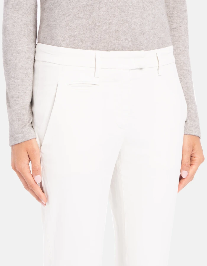 Perfect slim-fit cropped chino trousers, regular waist, welt pockets at the back. Warm hand stretch gabardine. Garment dyed. Dondup logo. Made in Italy