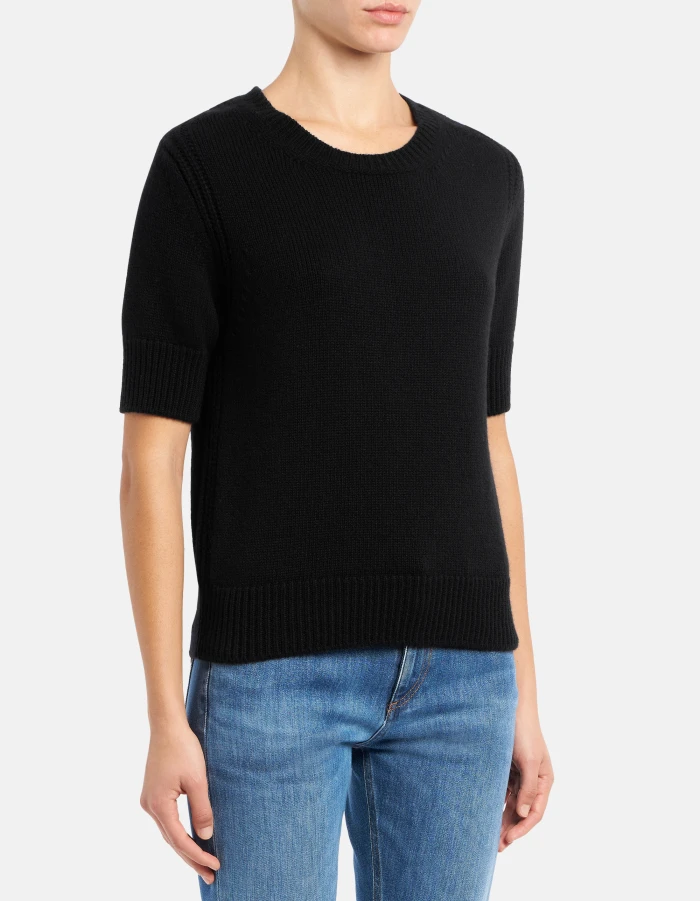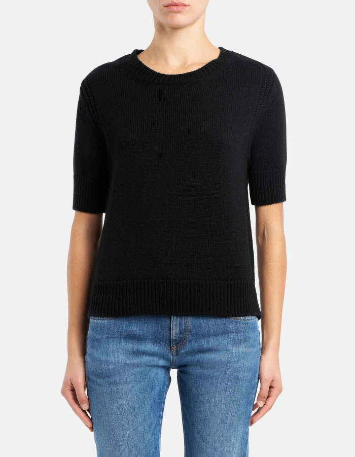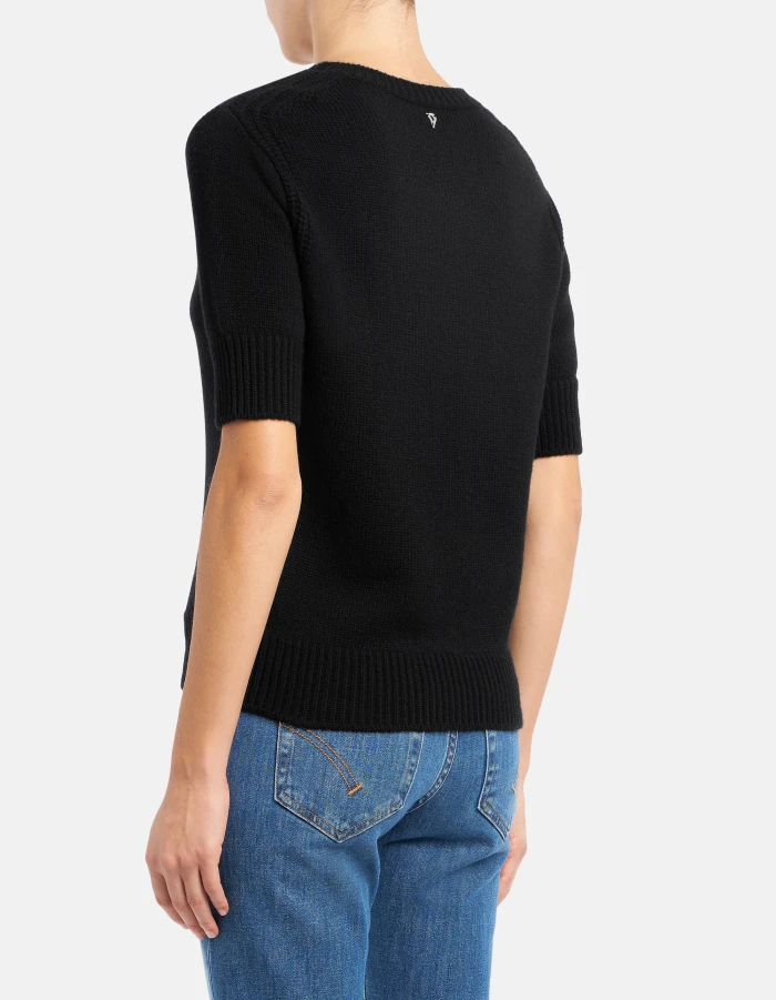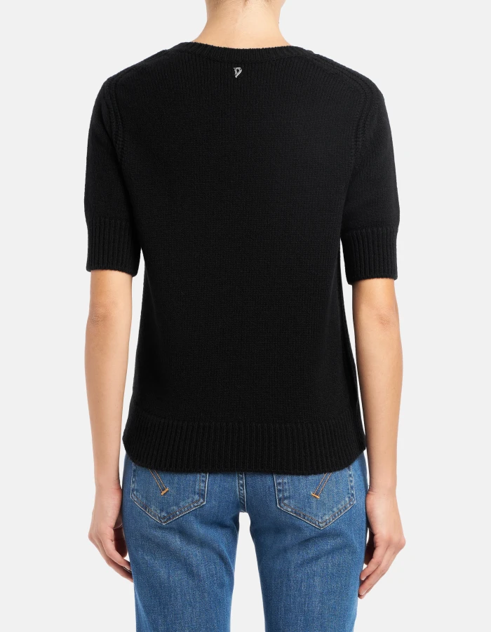 Regular-fit crew-neck jumper with short sleeves, ribbed sides, armholes and shoulders. Logo applique at the back. Smooth. Dondup logo. Made in Italy