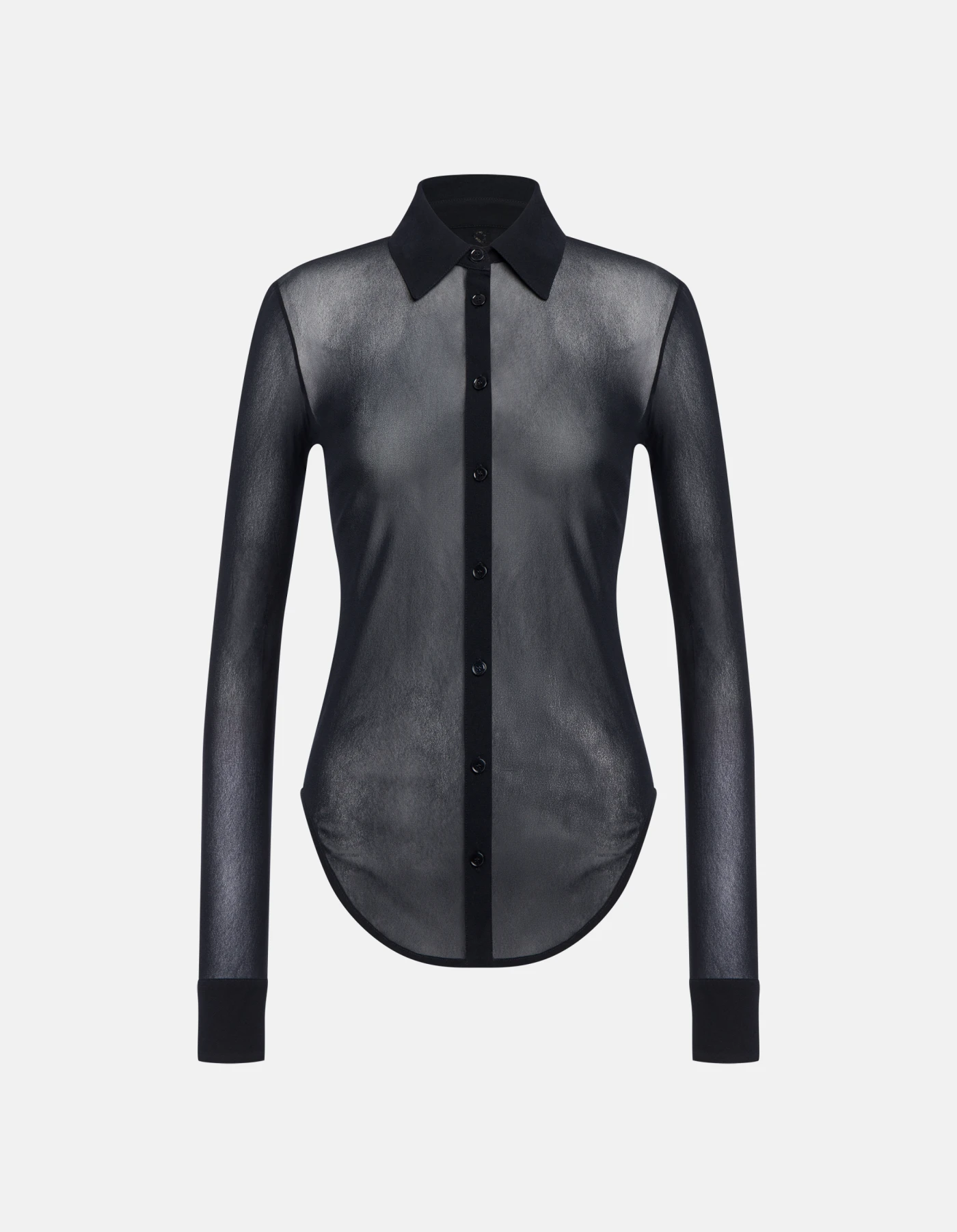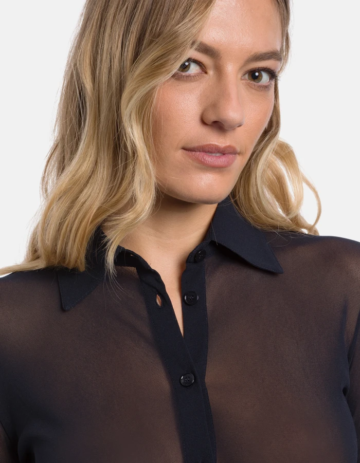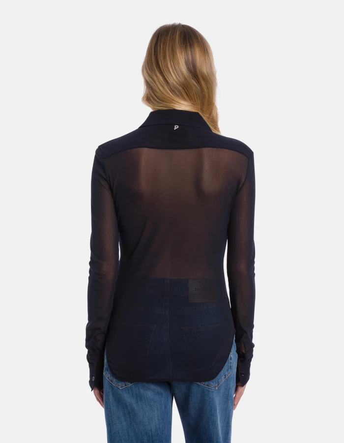 Slim-fit long-sleeved shirt in transparent tulle. Tulle. Dondup logo. Made in Italy
