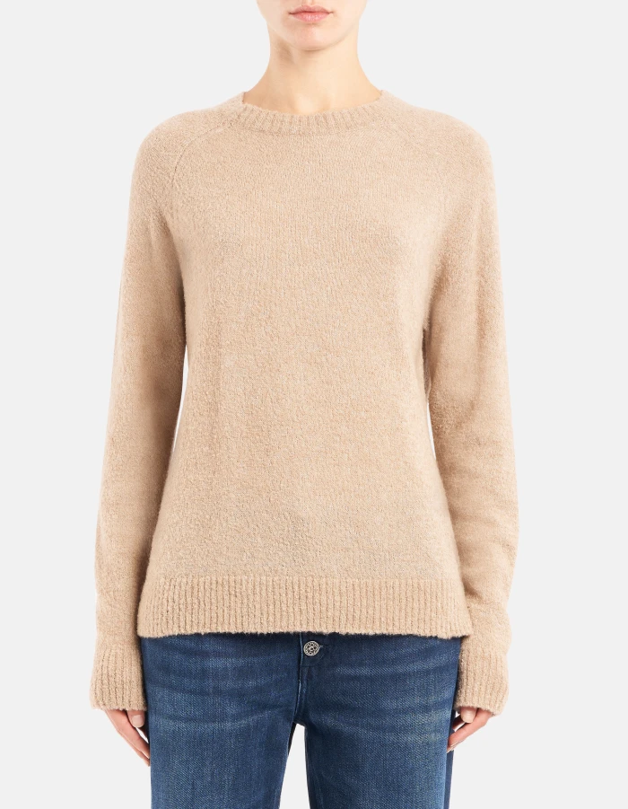 Oversized crew-neck jumper with long sleeves and ribbed hemline and cuffs. Bouclé. Dondup logo. Made in Italy