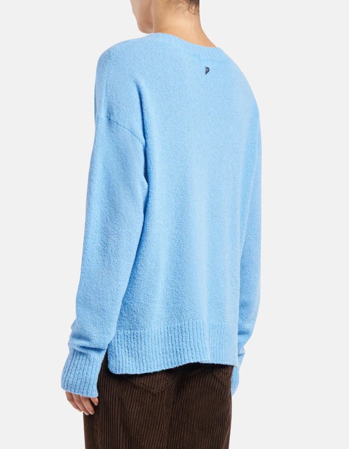 Oversized V-neck jumper with long sleeves and slits in ribbed hemline. Bouclé. Dondup logo. Made in Italy
