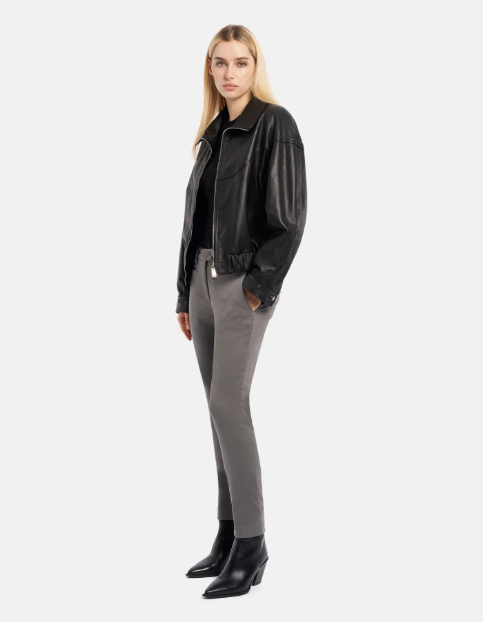Perfect slim-fit cropped chino trousers, regular waist, welt pockets at the back. Warm hand stretch gabardine. Garment dyed. Dondup logo. Made in Italy