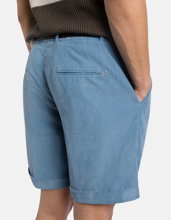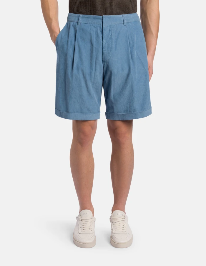 Bermuda Ethan loose fit, vita regolare, pinces sul davanti, risvolto fisso. Velluto leggero. Tintura in capo. Logo Dondup. Made in Italy
