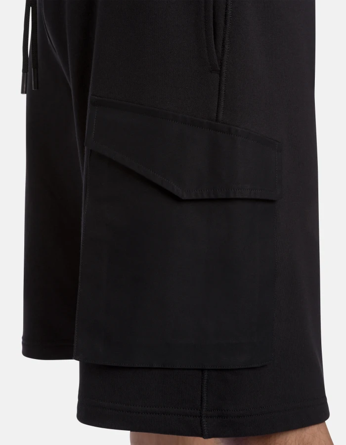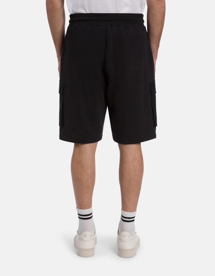 Bermuda regular con coulisse e tasche in gabardina di cotone applicate sui lati. Mix tessuti. Logo Dondup. Made in Italy