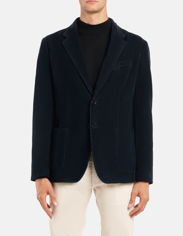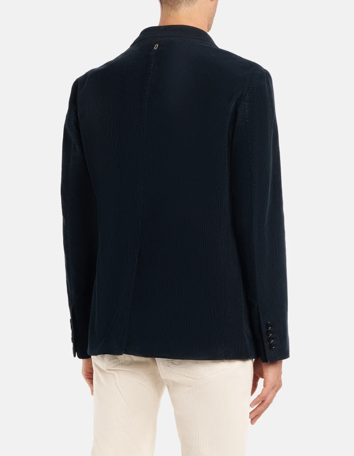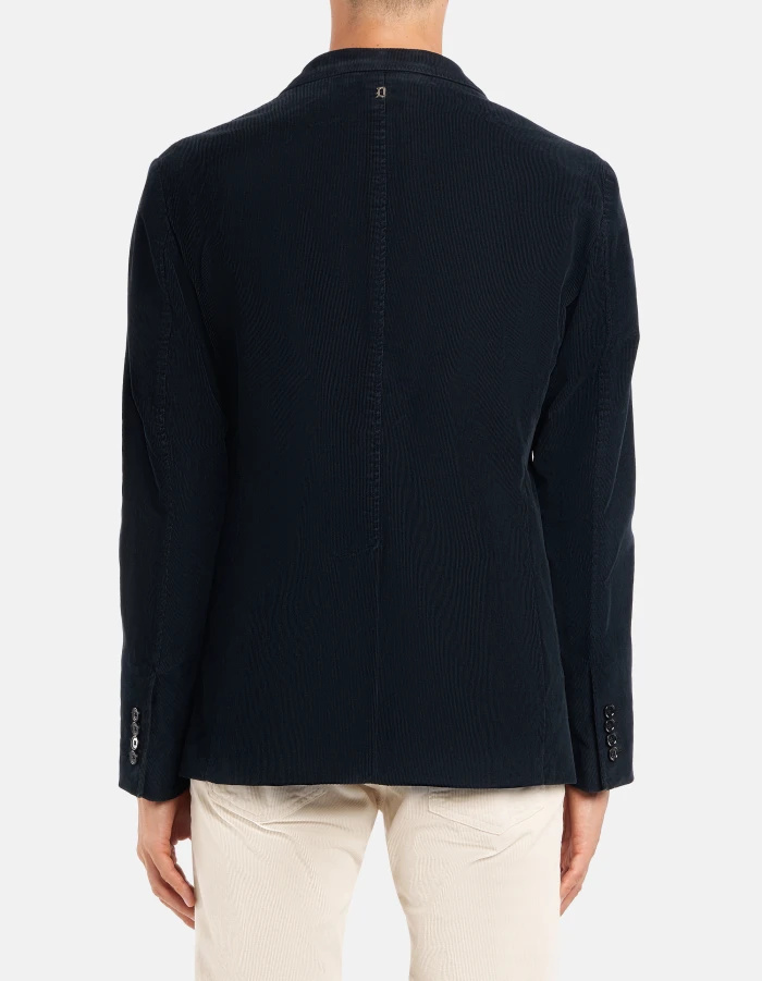 Blazer monopetto slim foderato a due bottoni con tasche a toppa e taschino a filetto. Velluto a coste 1500 righe. Tintura in capo. Logo Dondup. Made in Italy