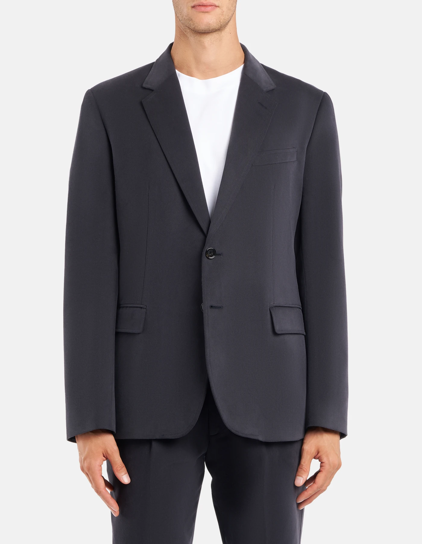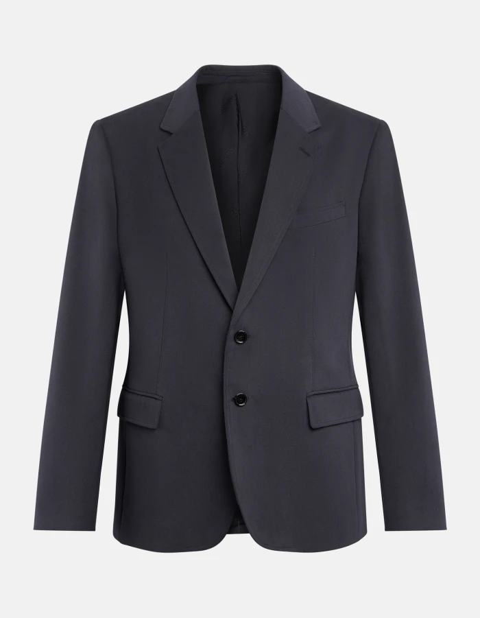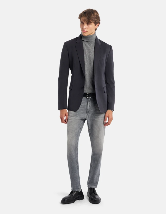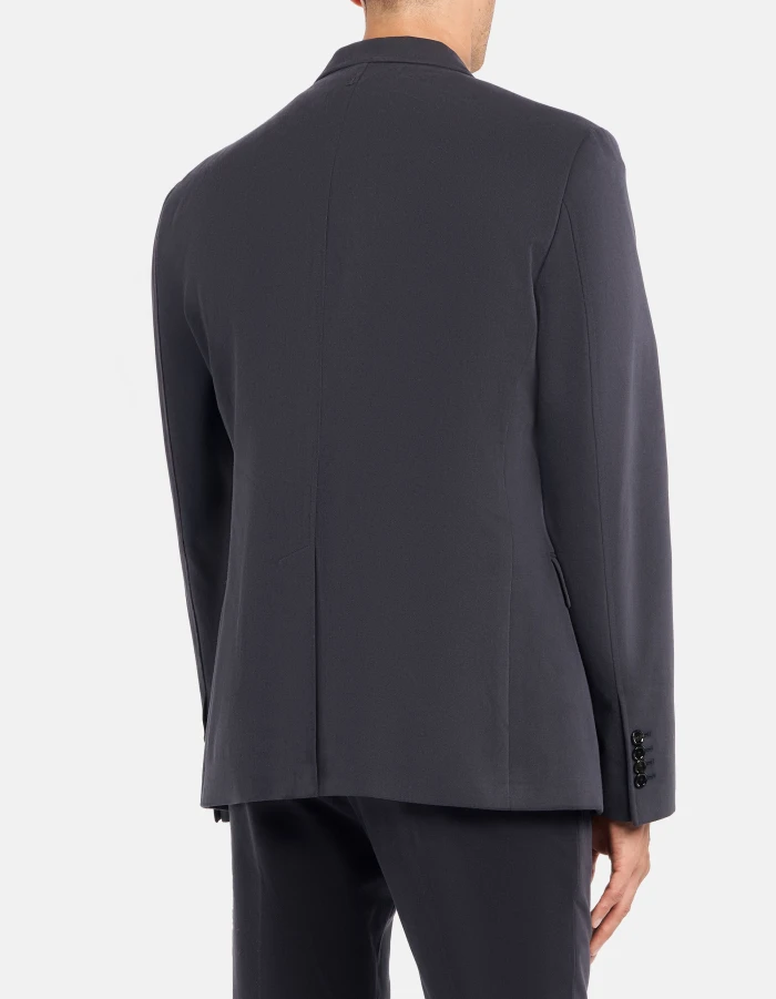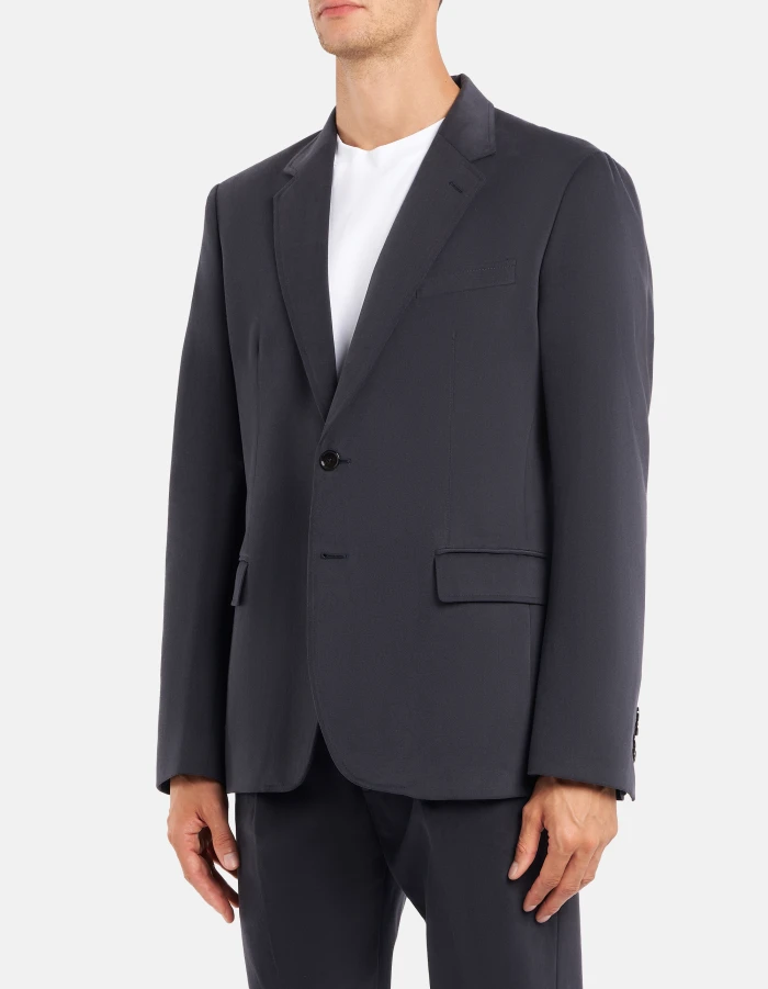 Blazer monopetto slim foderato a due bottoni con tasche con pattina e taschino a filetto. Gabardine velour. Logo Dondup. Made in Italy
