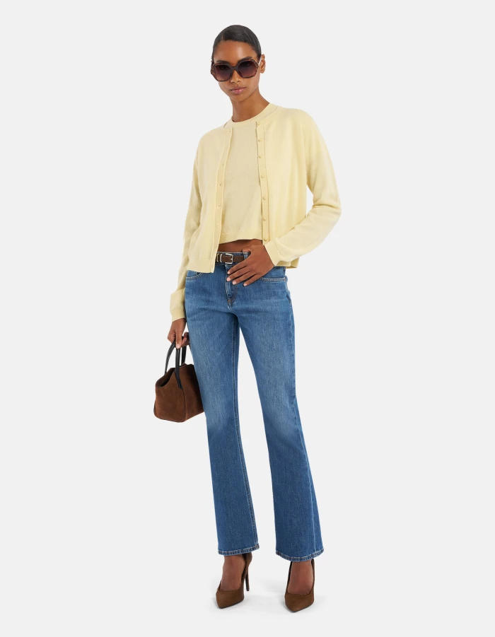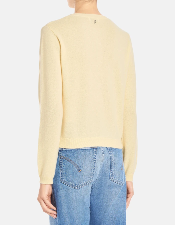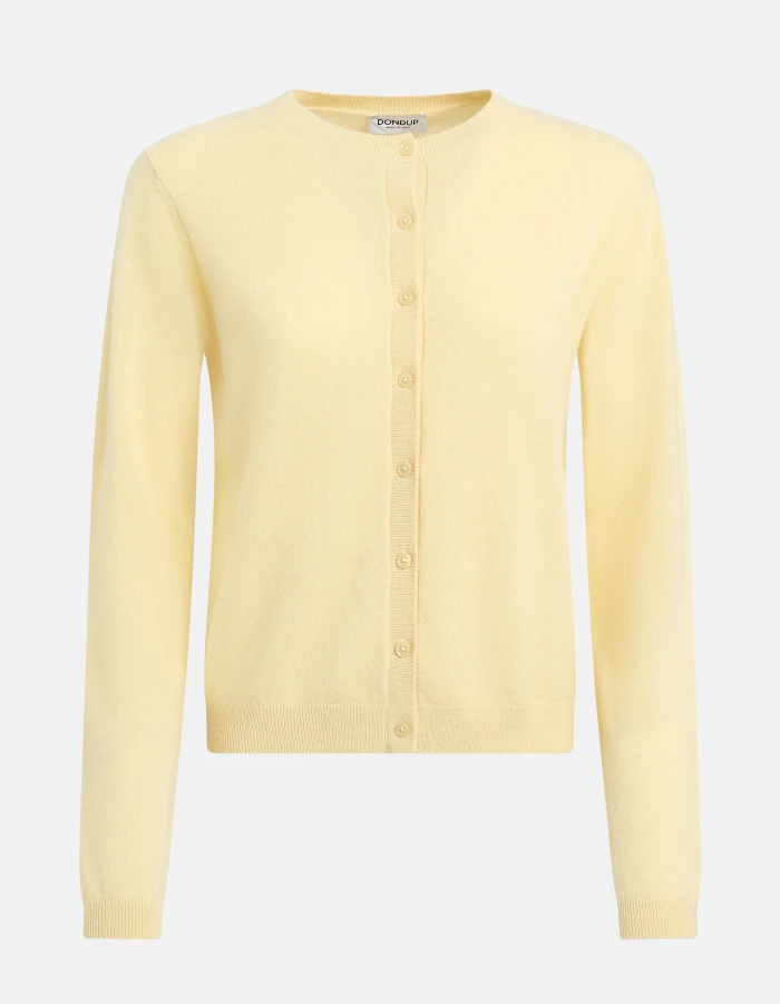 Cardigan slim a maniche lunghe con logo applicato sul dietro. Lana cashmere. Logo Dondup. Made in Italy