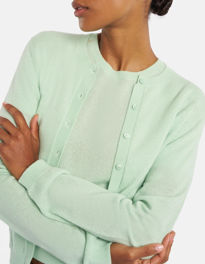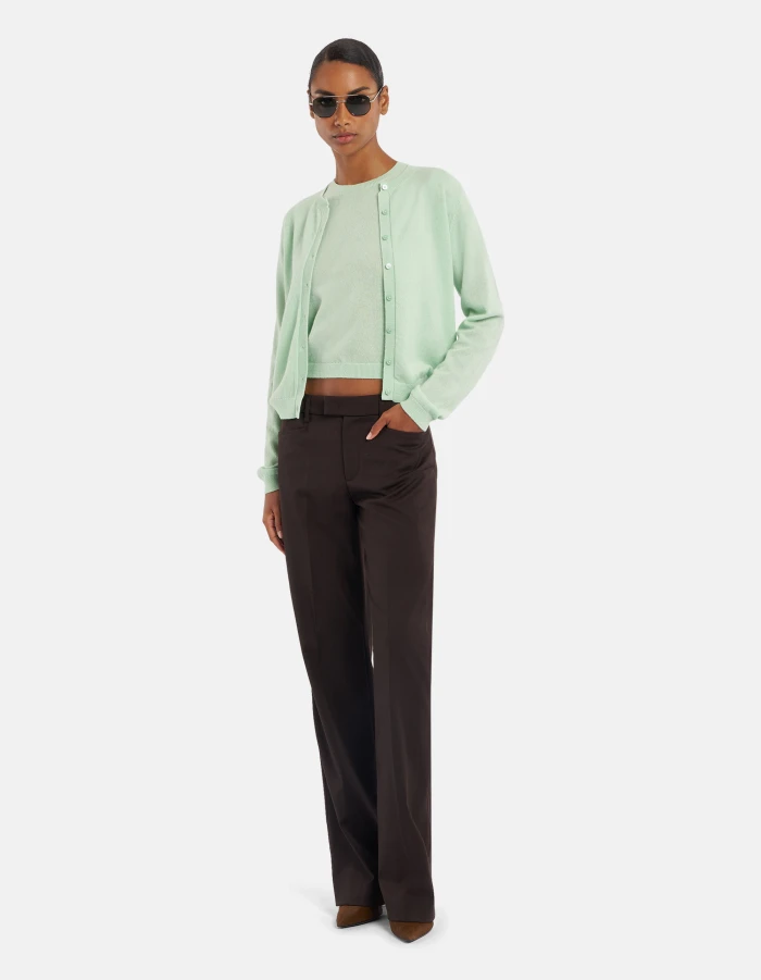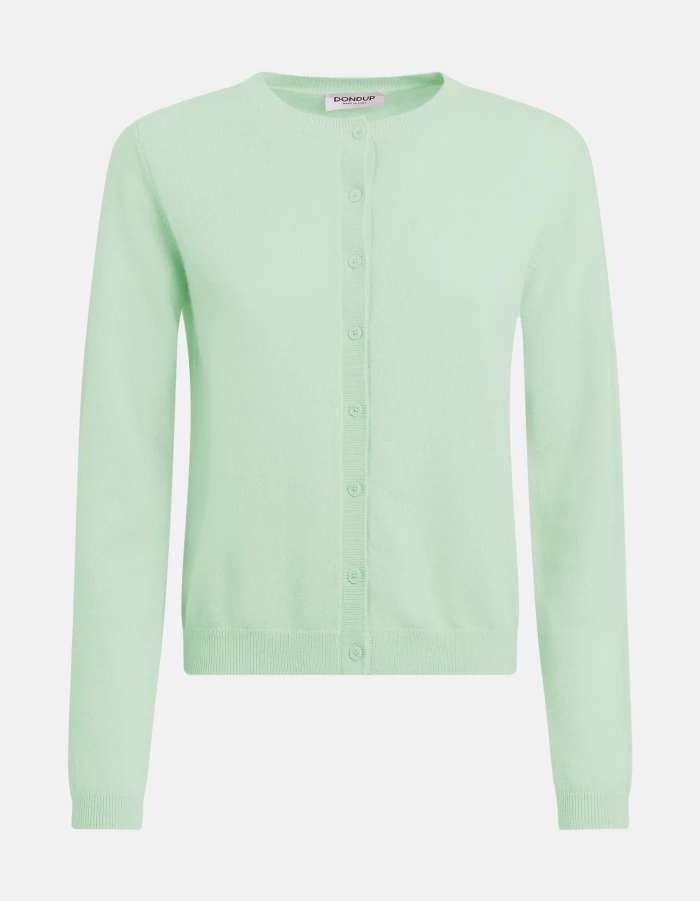Cardigan slim a maniche lunghe con logo applicato sul dietro. Lana cashmere. Logo Dondup. Made in Italy