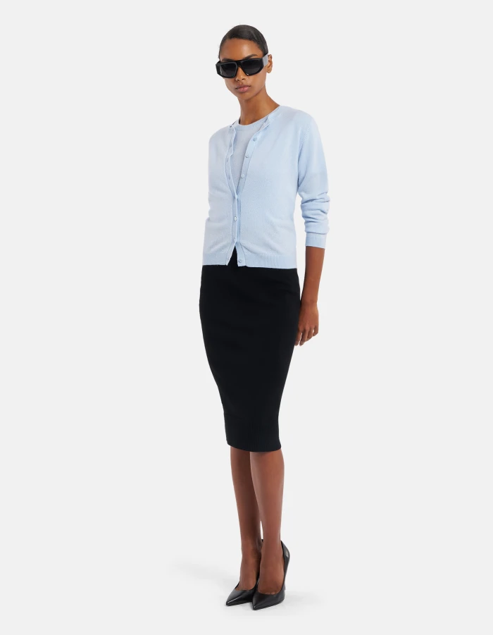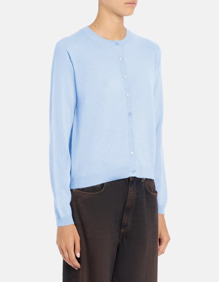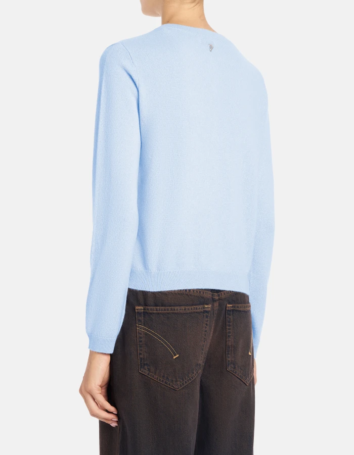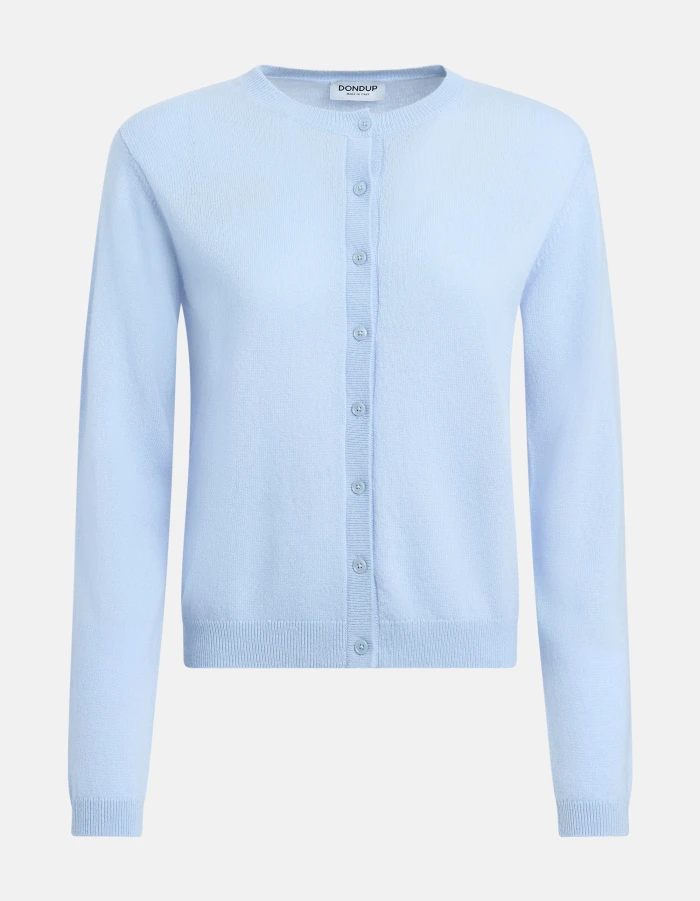 Cardigan slim a maniche lunghe con logo applicato sul dietro. Lana cashmere. Logo Dondup. Made in Italy