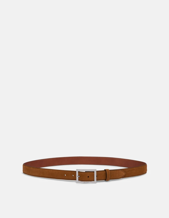 Cintura alta 3 cm con fibbia personalizzata in galvanica nichel. Crosta. Logo Dondup. Made in Italy