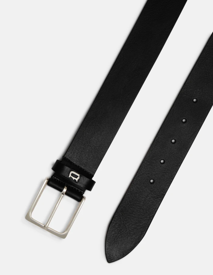 Cintura alta 4 cm con fibbia in galvanica nichel e rivetto logo su passante. Cuoio. Logo Dondup. Made in Italy