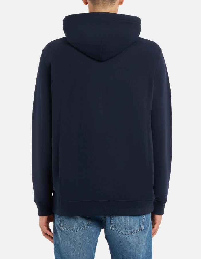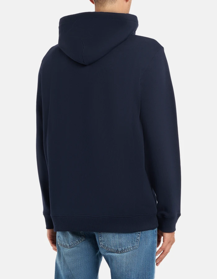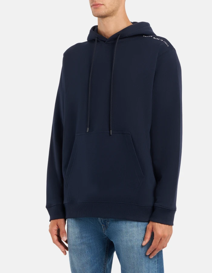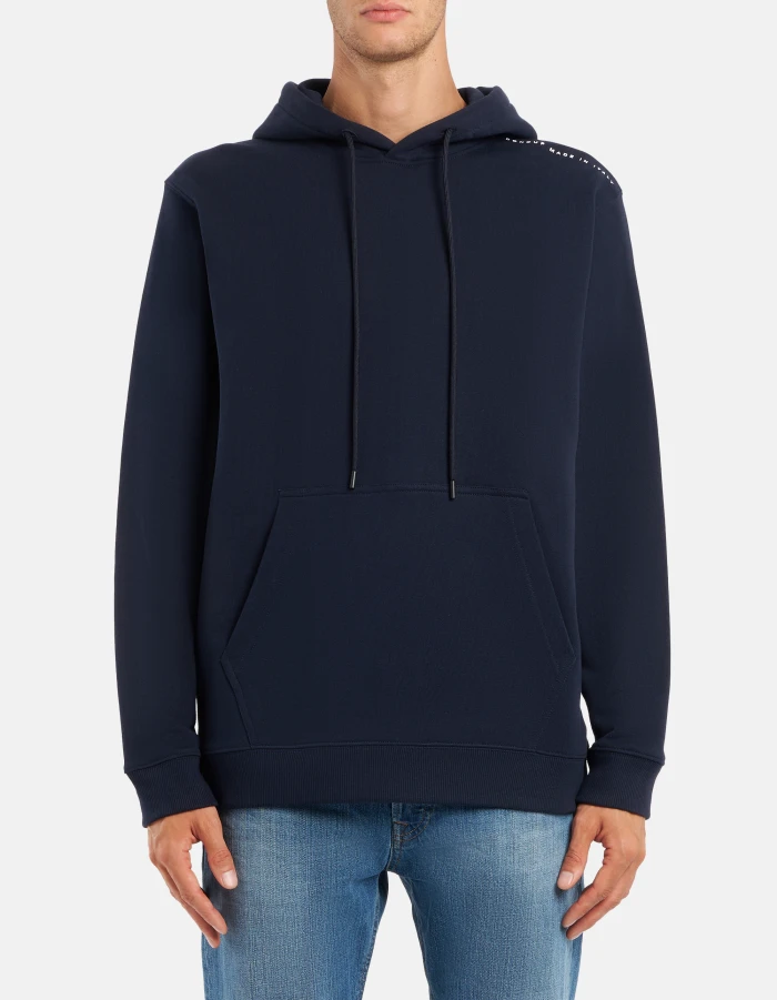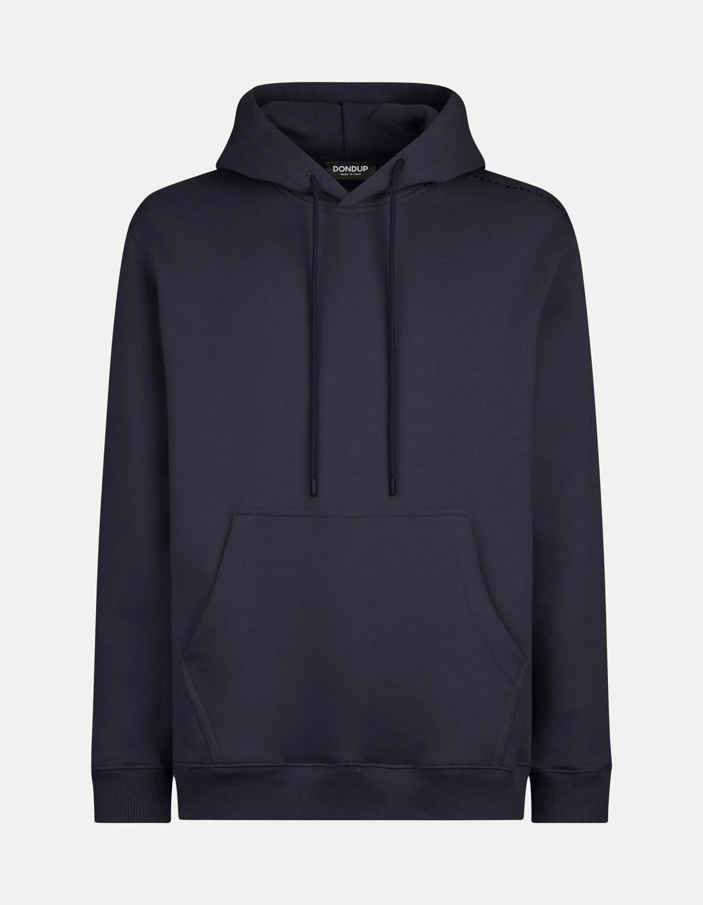 Felpa con cappuccio regular a maniche lunghe con tasca a marsupio e stampa logo sulla spalla sinistra. Felpa di cotone. Logo Dondup. Made in Italy