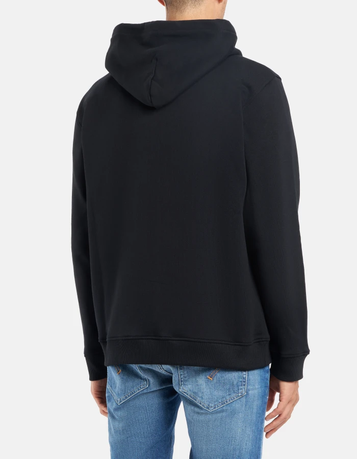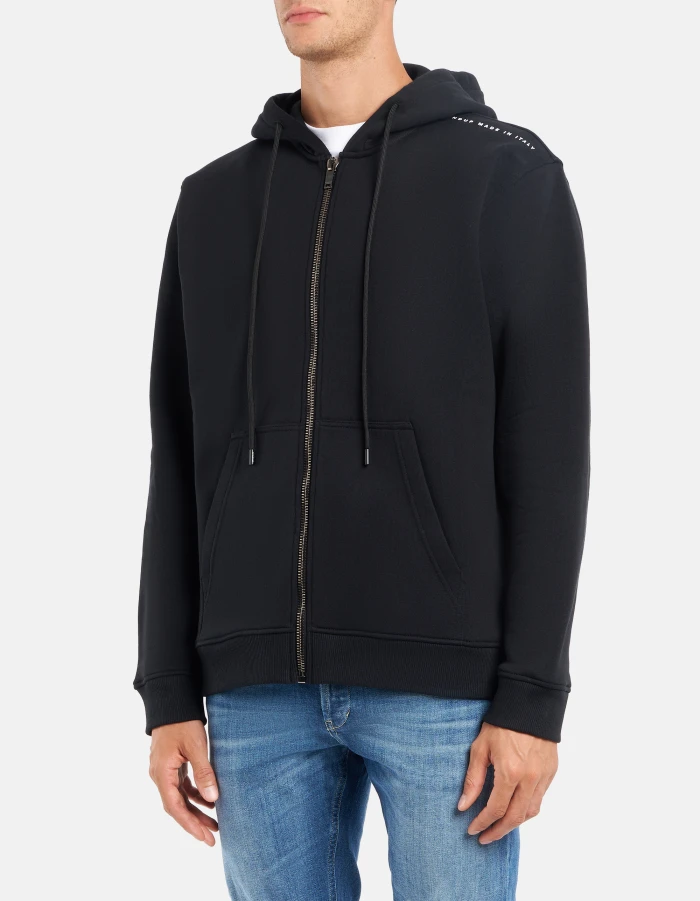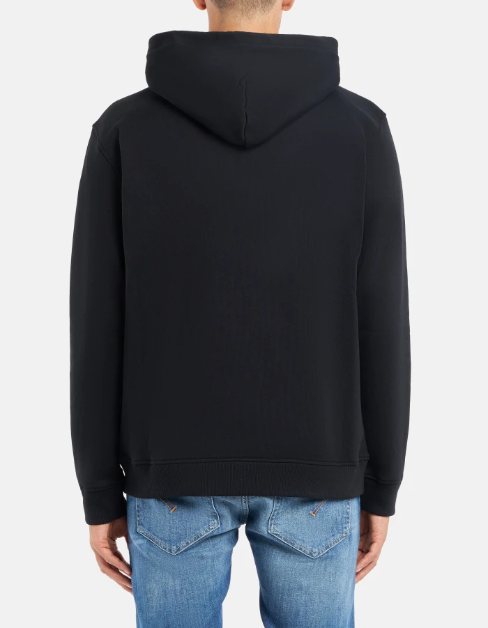Felpa con cappuccio regular a maniche lunghe con tasca a marsupio, chiusura con zip e stampa logo sulla spalla sinistra. Felpa di cotone. Logo Dondup. Made in Italy