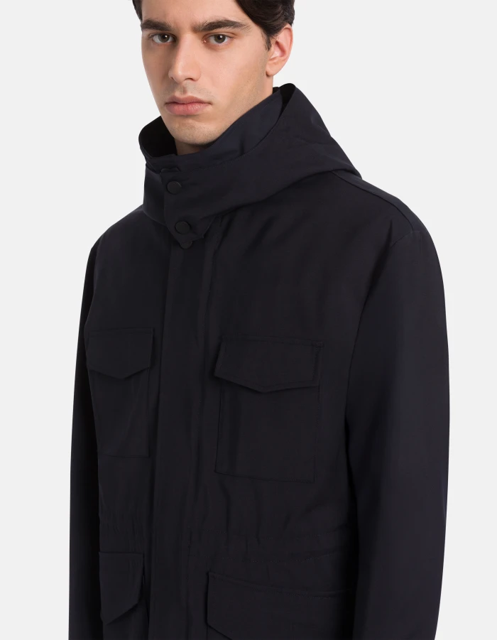 Field jacket regular in lana tecnica