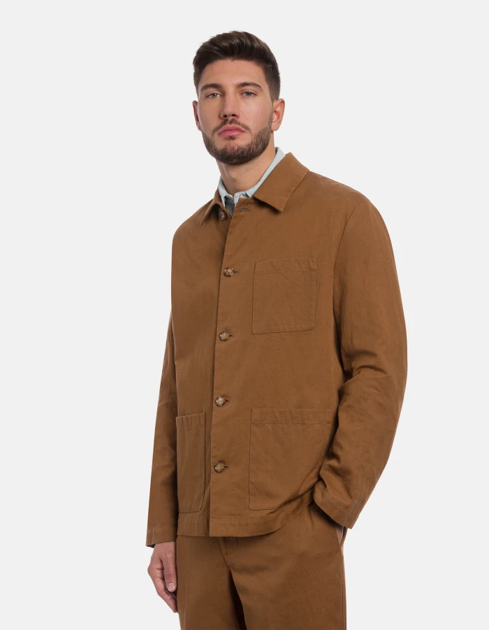 Giacca regular in canvas cotone e lino