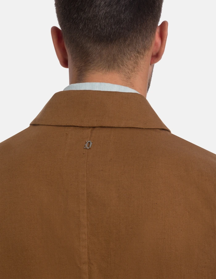 Giacca regular sfoderata con collo a camicia tasche e taschino a toppa squadrate. Allacciatura con bottoni. Canvas cotone e lino. Logo Dondup. Made in Italy