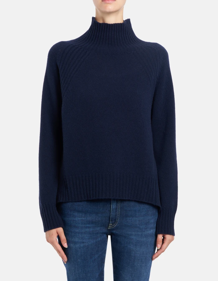Maglia dolcevita regular a maniche lunghe, con giochi di punti fondo asimmetrico e logo applicato sul dietro. Lana cashmere. Logo Dondup. Made in Italy