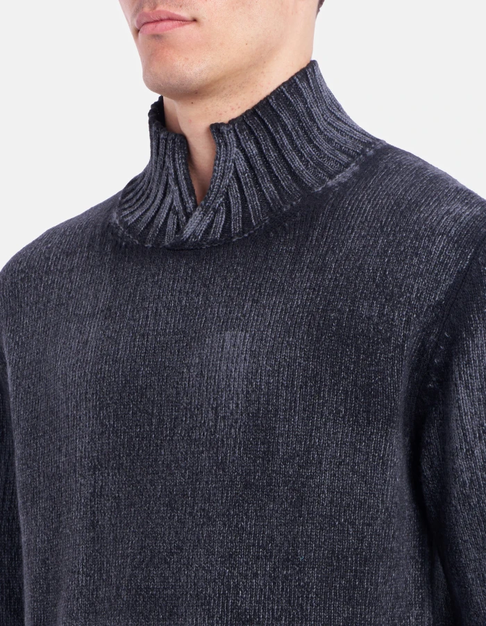 Maglia dolvevita regular a maniche lunghe con apertura sul collo e D logo applicata sul dietro. Lana trattata. Tintura in capo old. Logo Dondup. Made in Italy