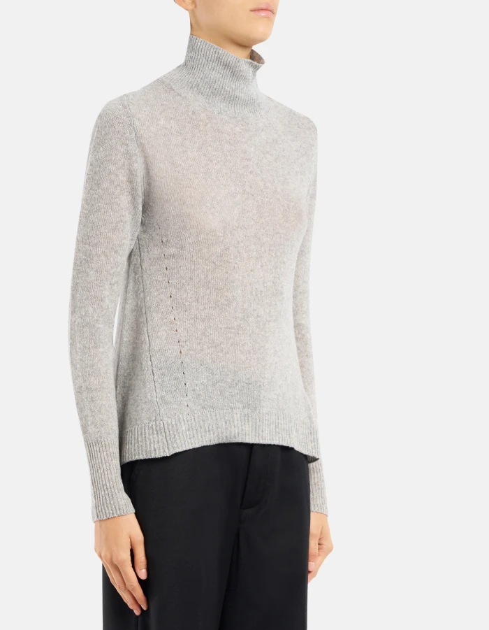 Maglia dolcevita slim a maniche lunghe con punzonature in tono e logo applicato sul dietro. Lana cashmere. Logo Dondup. Made in Italy