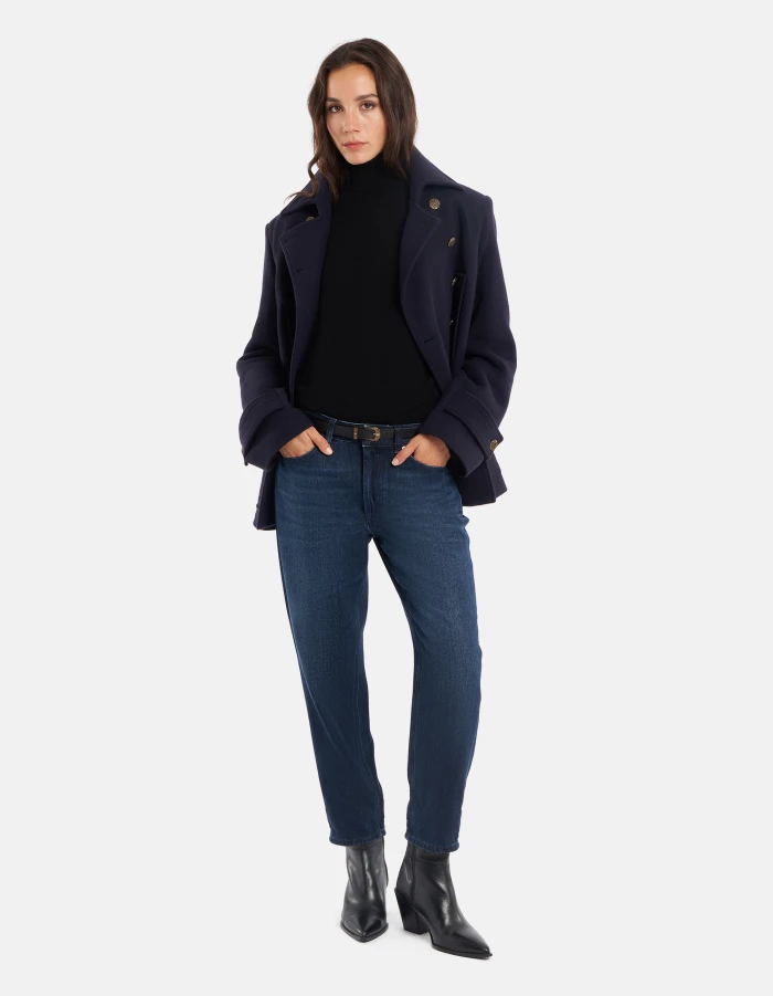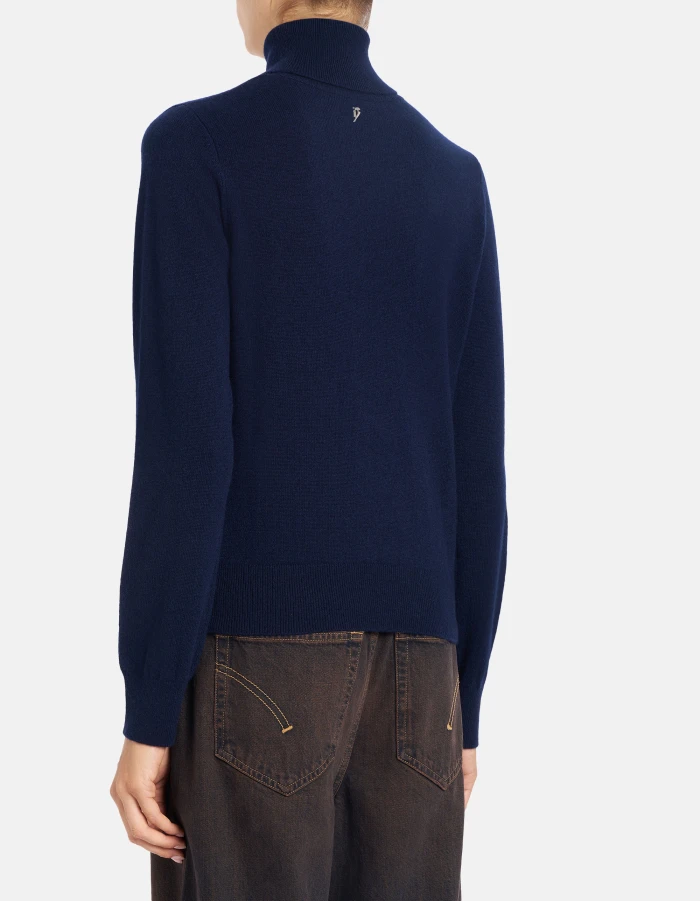 Maglia dolcevita slim a maniche lunghe con logo applicato sul dietro. Lana cashmere. Logo Dondup. Made in Italy