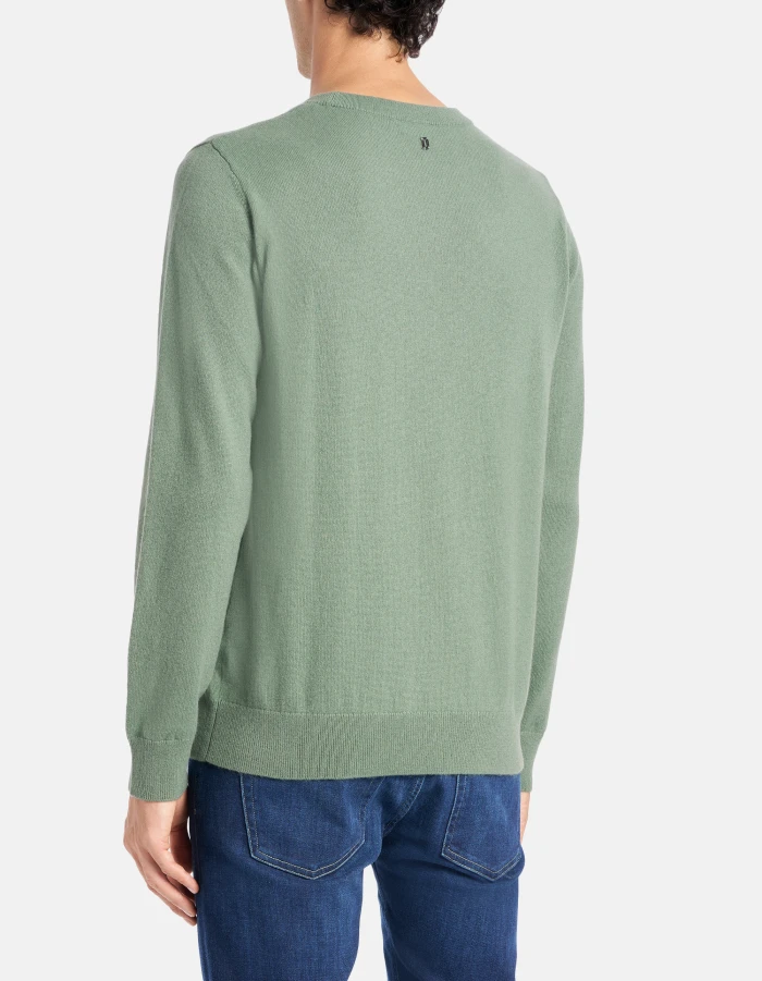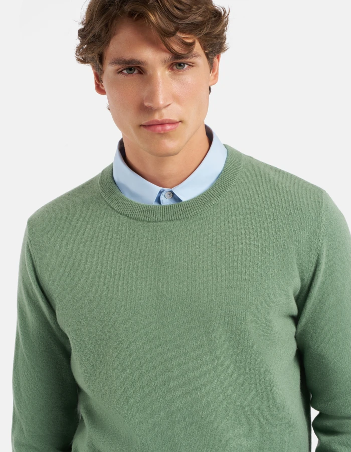 Maglia girocollo regular a maniche lunghe con logo applicato sul dietro. Lana cashmere. Logo Dondup. Made in Italy