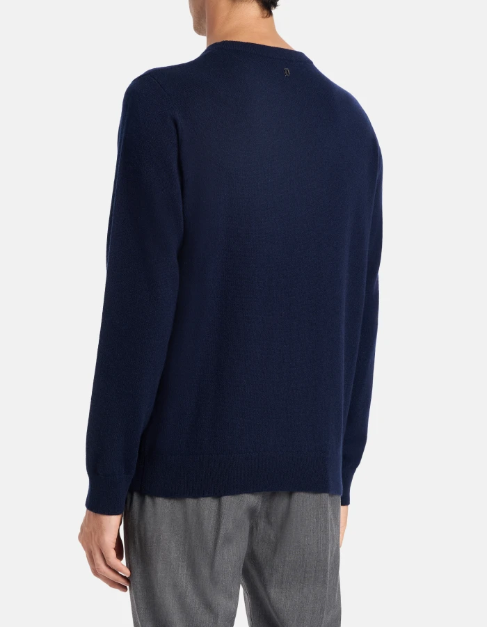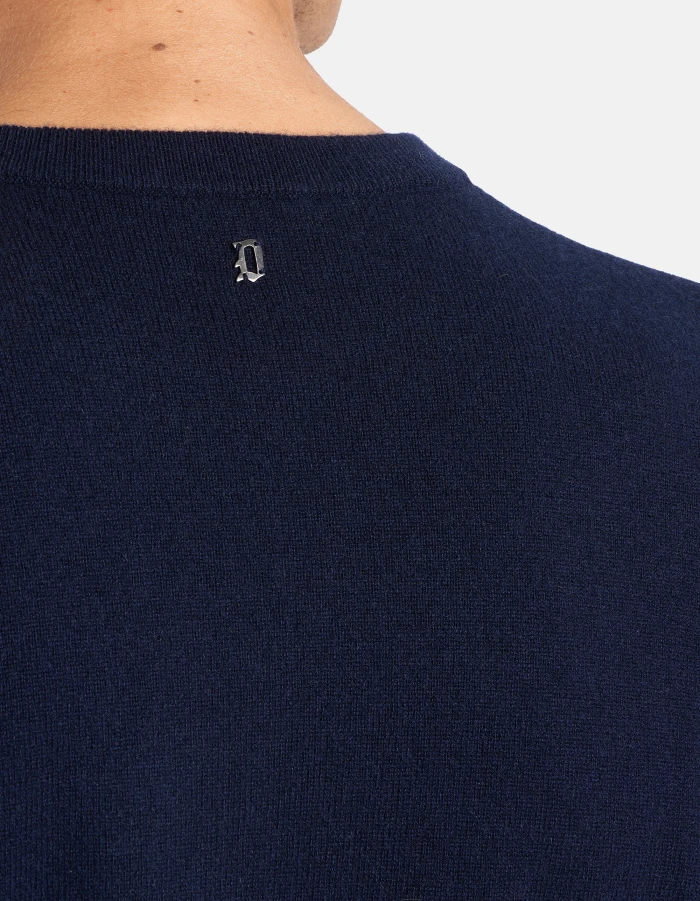 Maglia girocollo regular a maniche lunghe con logo applicato sul dietro. Lana cashmere. Logo Dondup. Made in Italy