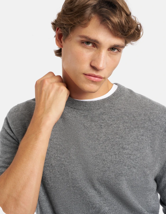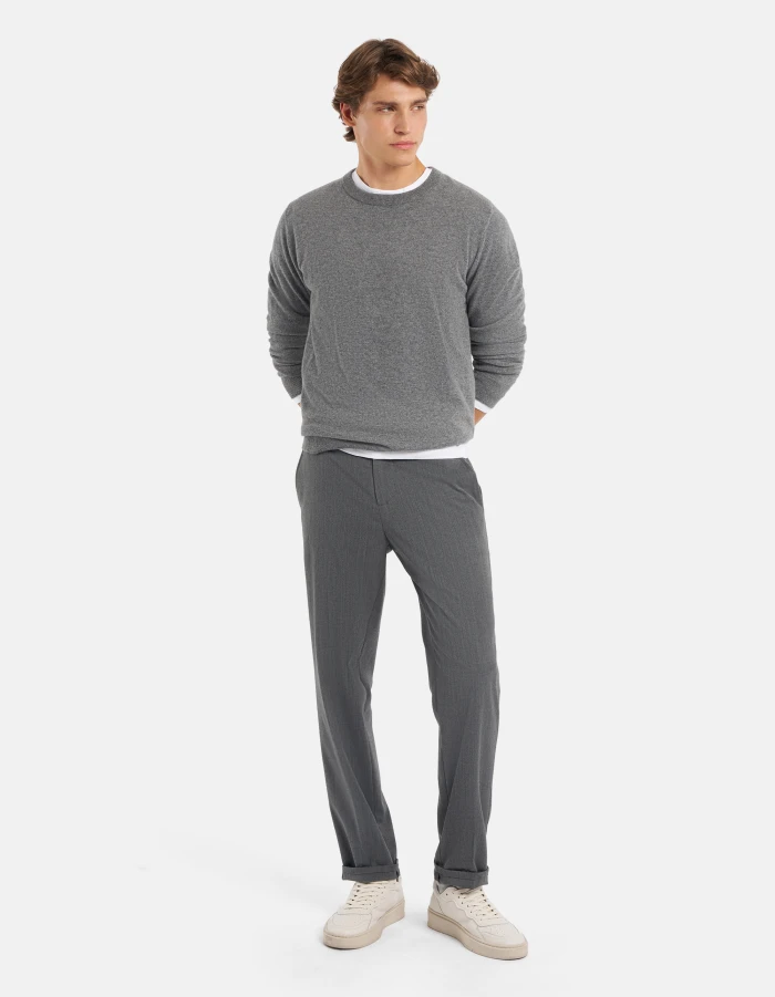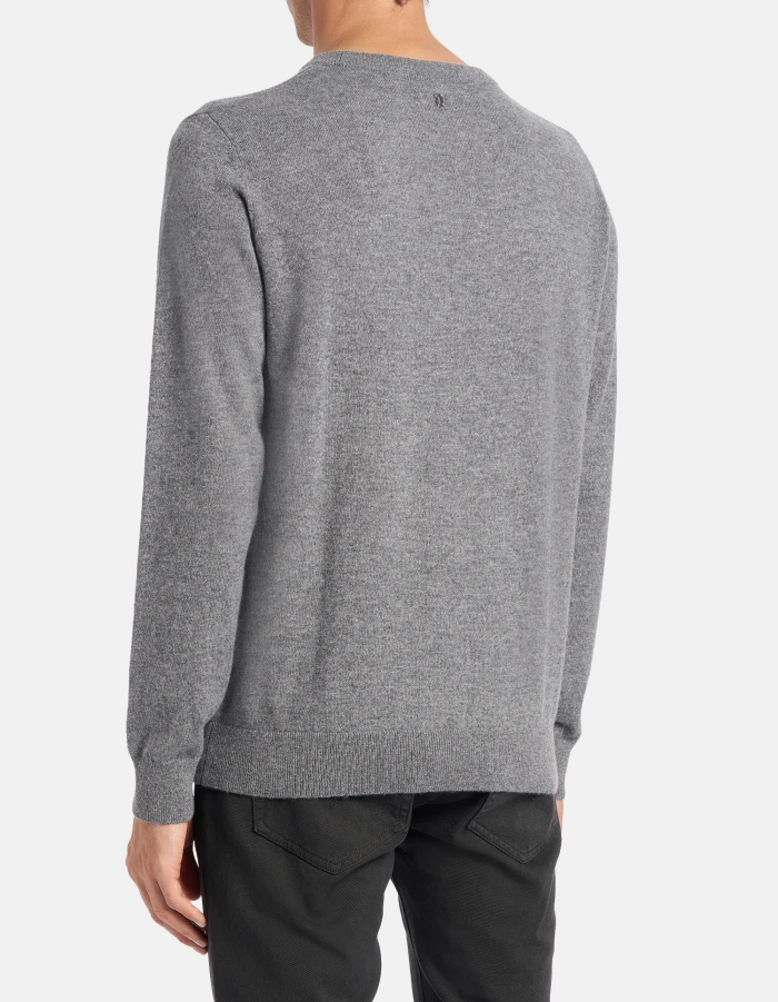 Maglia girocollo regular a maniche lunghe con logo applicato sul dietro. Lana cashmere. Logo Dondup. Made in Italy