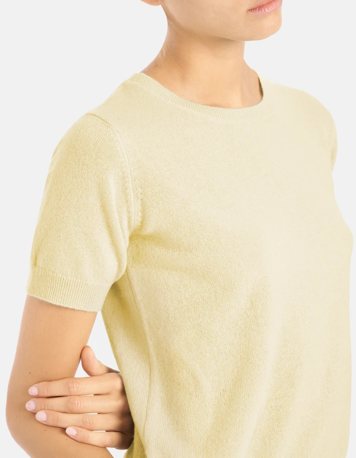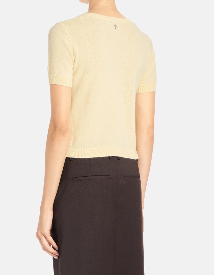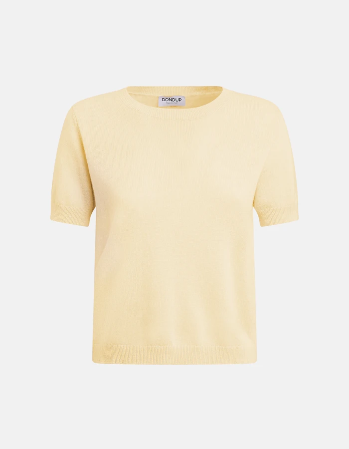 Maglia girocollo slim a maniche corte con logo applicato sul dietro. Lana cashmere. Logo Dondup. Made in Italy