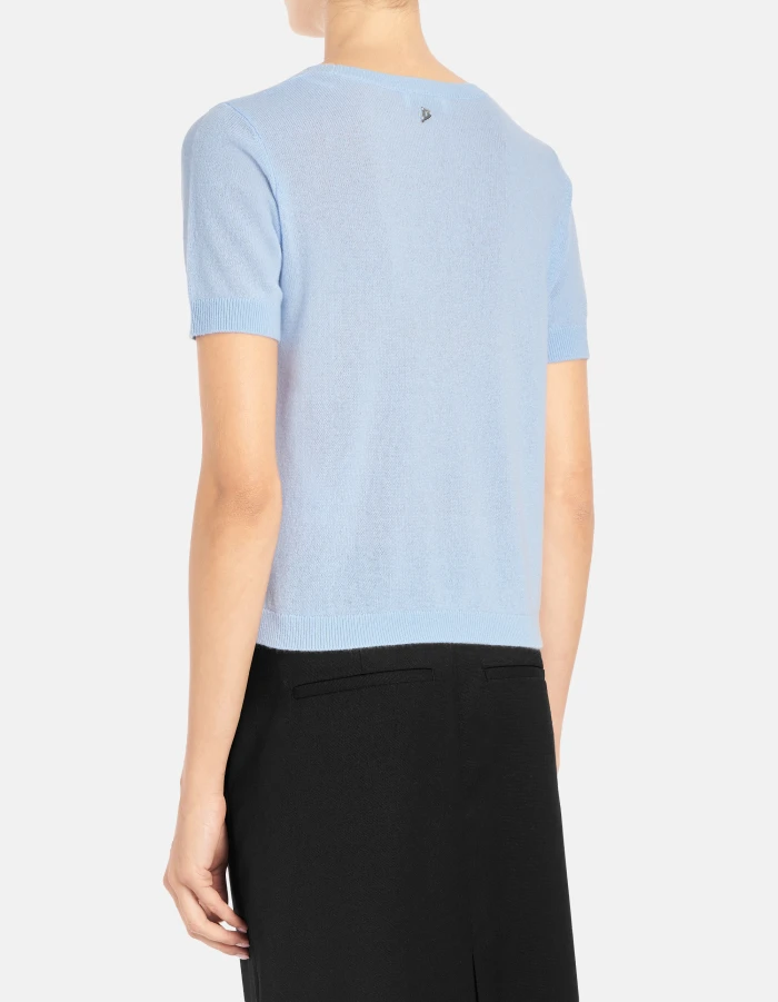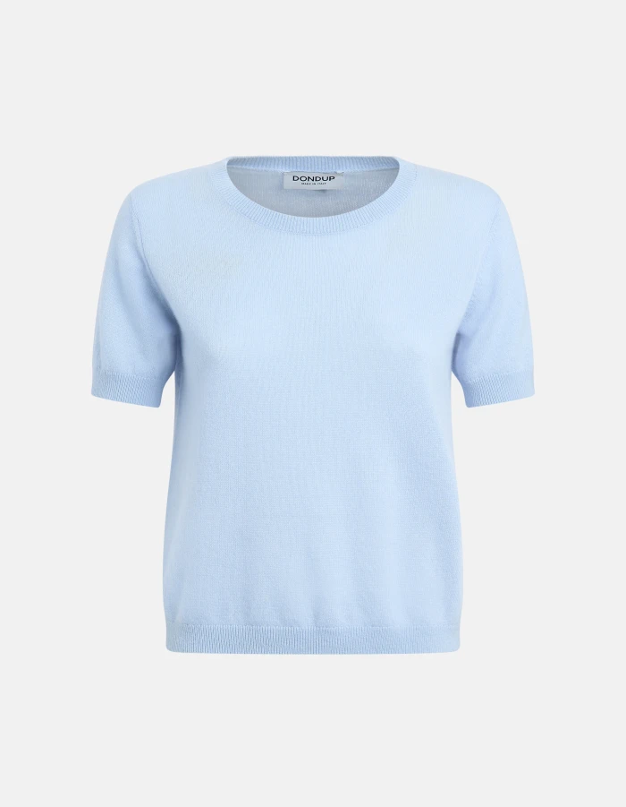 Maglia girocollo slim a maniche corte con logo applicato sul dietro. Lana cashmere. Logo Dondup. Made in Italy