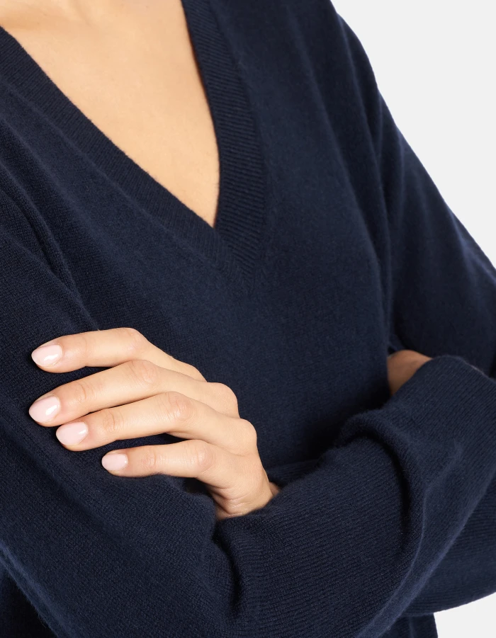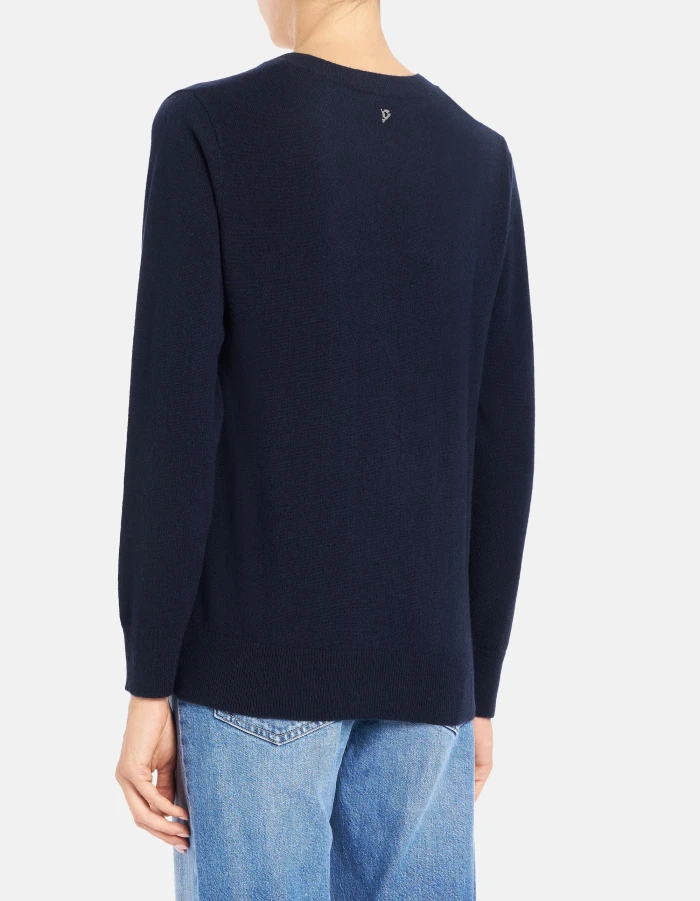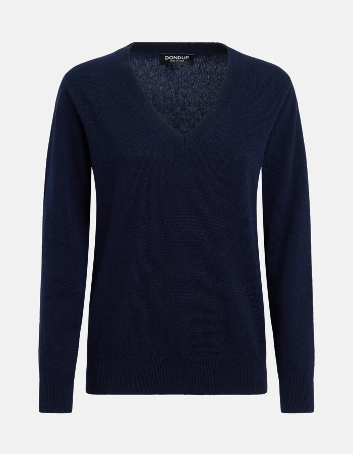 Maglia scollo V regular a maniche lunghe con logo applicato sul dietro. Lana cashmere. Logo Dondup. Made in Italy