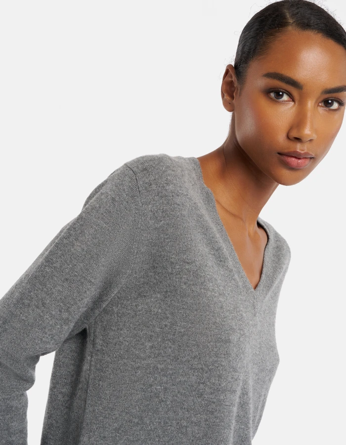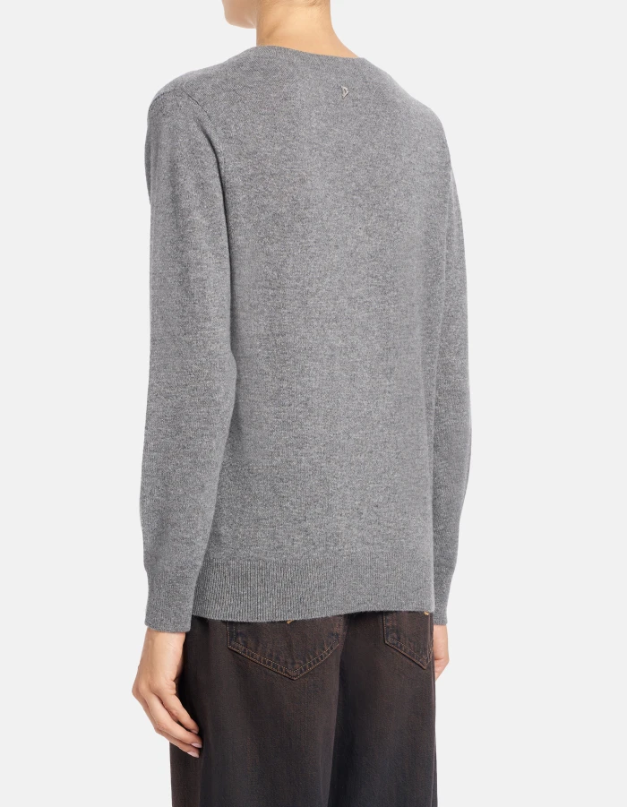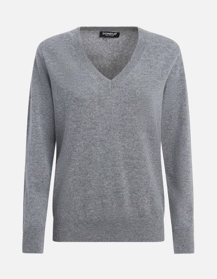 Maglia scollo V regular a maniche lunghe con logo applicato sul dietro. Lana cashmere. Logo Dondup. Made in Italy