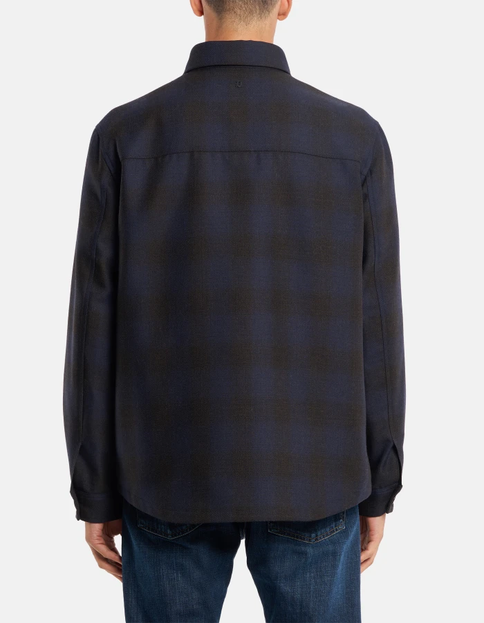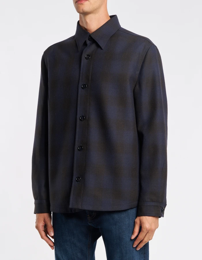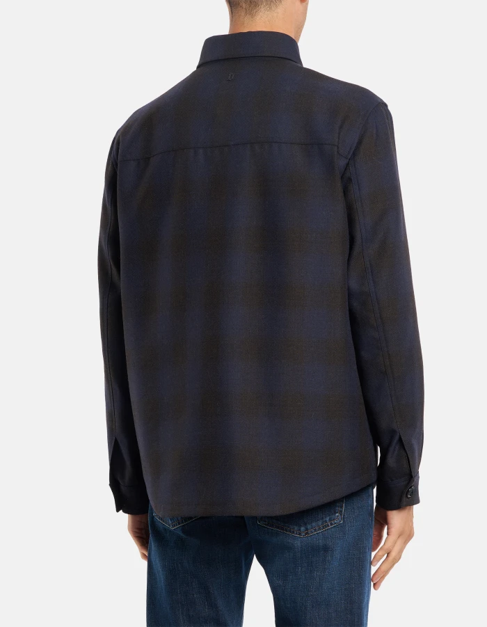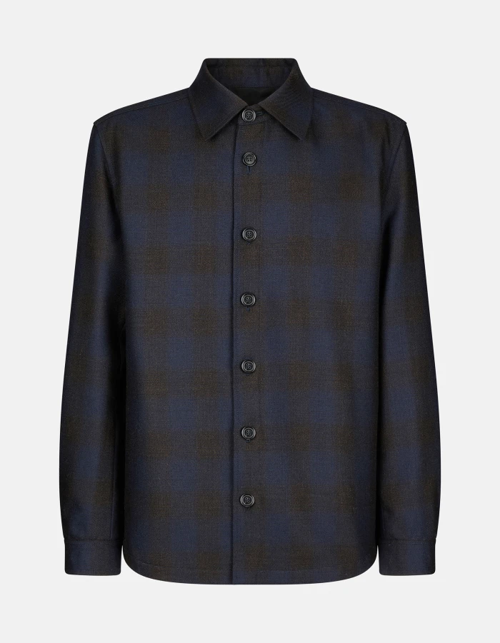 Overshirt foderata ed imbottita con leggera ovattina, con collo a camicia, allacciatura con bottoni, tasche inserite nel fianco. Scacco in crêpe di lana Logo Dondup. Made in Italy