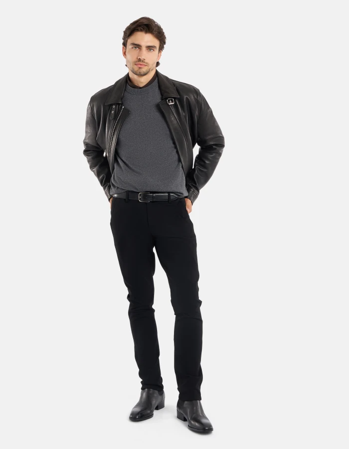Pantaloni Gaubert slim chino, vita bassa, tasche a filetto posteriori. Punto milano stretch. Logo Dondup. Made in Italy