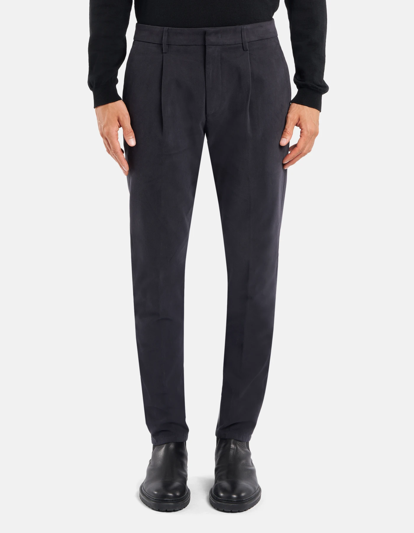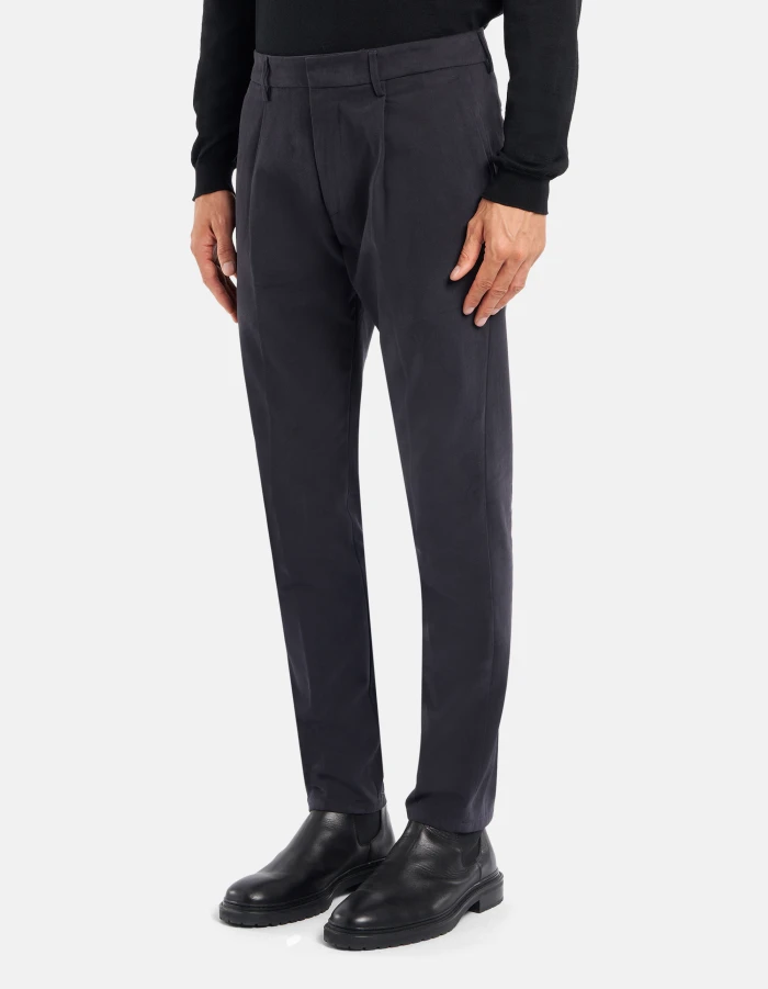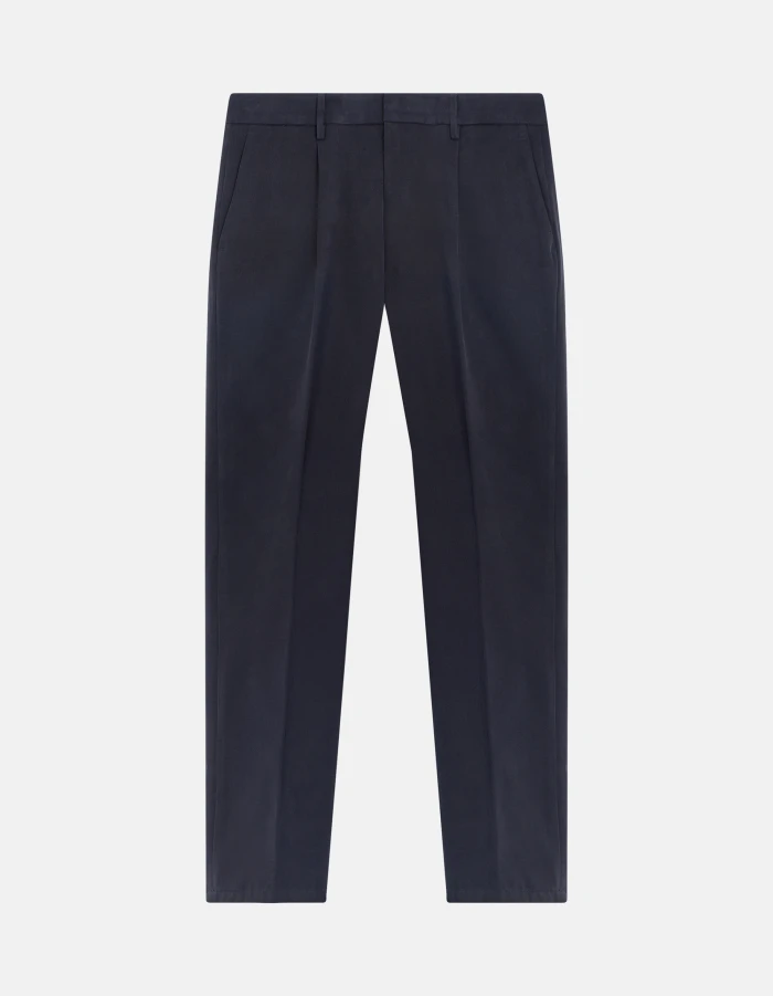 Pantaloni Ralp regular chino, vita regolare, pinces sul davanti, tasche a filetto posteriori. Gabardine velour. Logo Dondup. Made in Italy