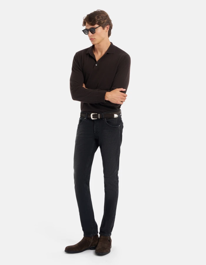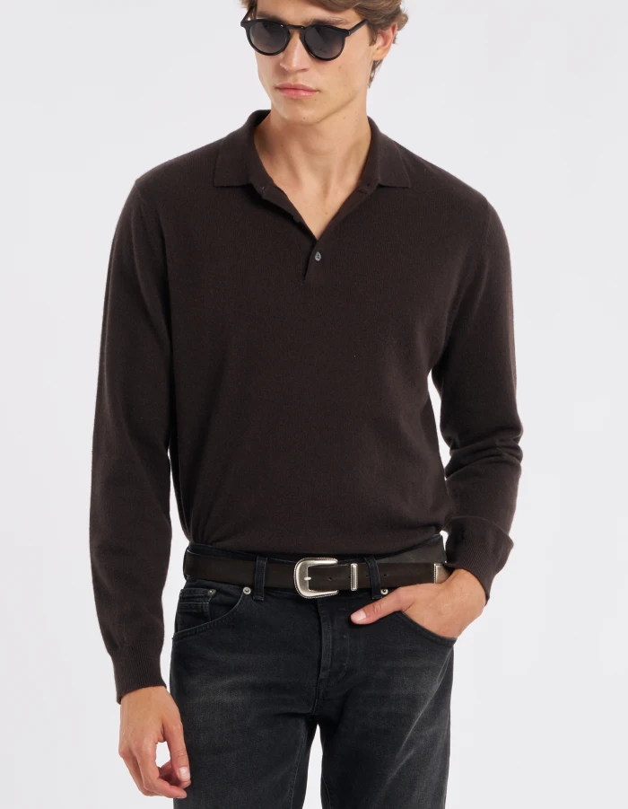 Polo regular a maniche lunghe con logo applicato sul dietro. Lana cashmere. Logo Dondup. Made in Italy
