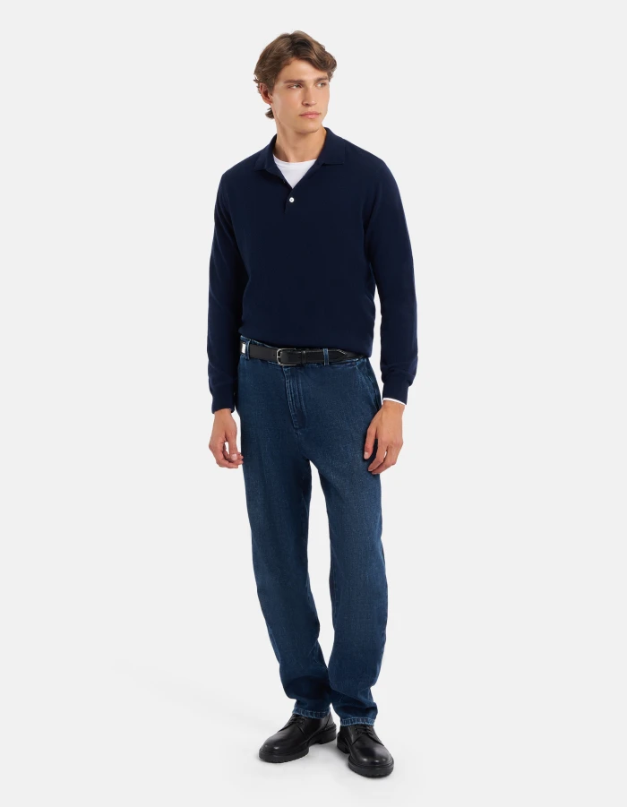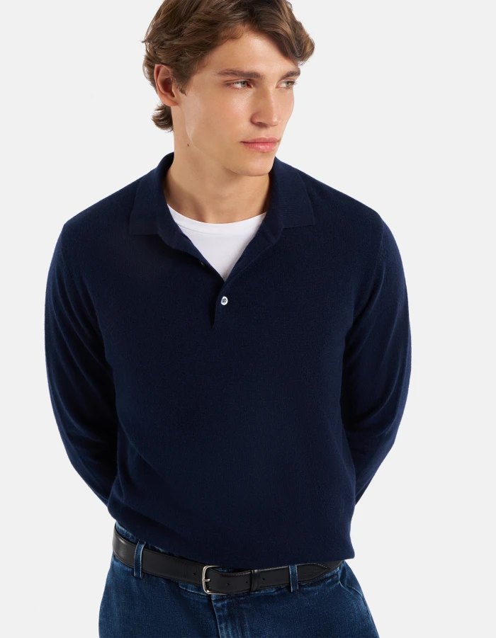 Polo regular a maniche lunghe con logo applicato sul dietro. Lana cashmere. Logo Dondup. Made in Italy