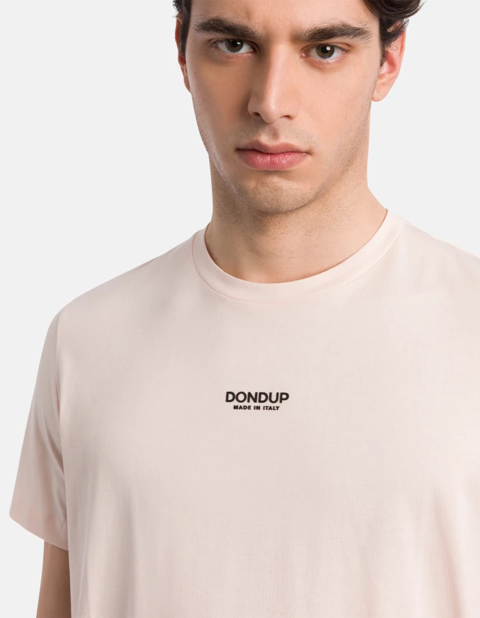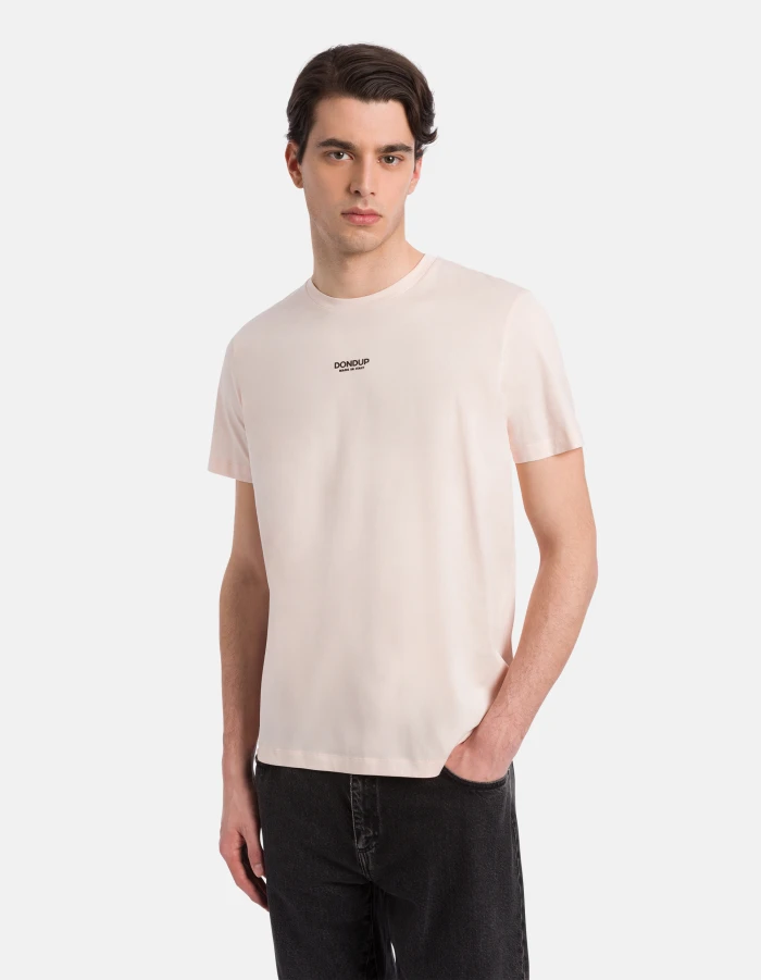 T-shirt girocollo regular a maniche corte con stampa logo sul centro davanti. Jersey di cotone basico. Logo Dondup. Made in Italy