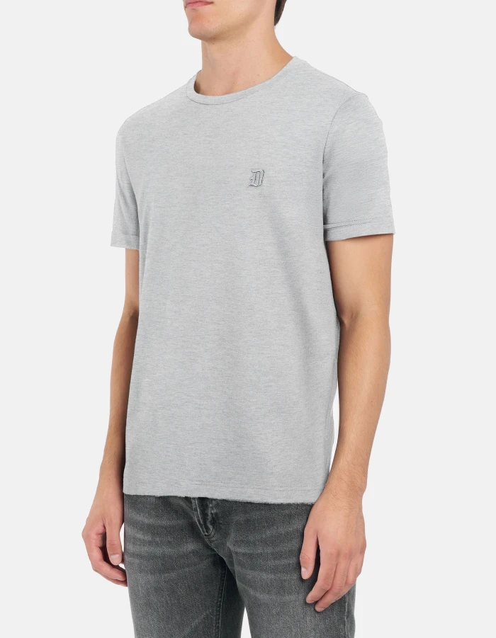T-shirt girocollo regular a maniche corte con D logo ricamato sul petto. Jersey di cotone. Logo Dondup. Made in Italy