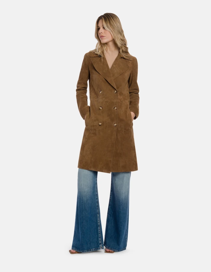 Trench doppiopetto slim in suede
