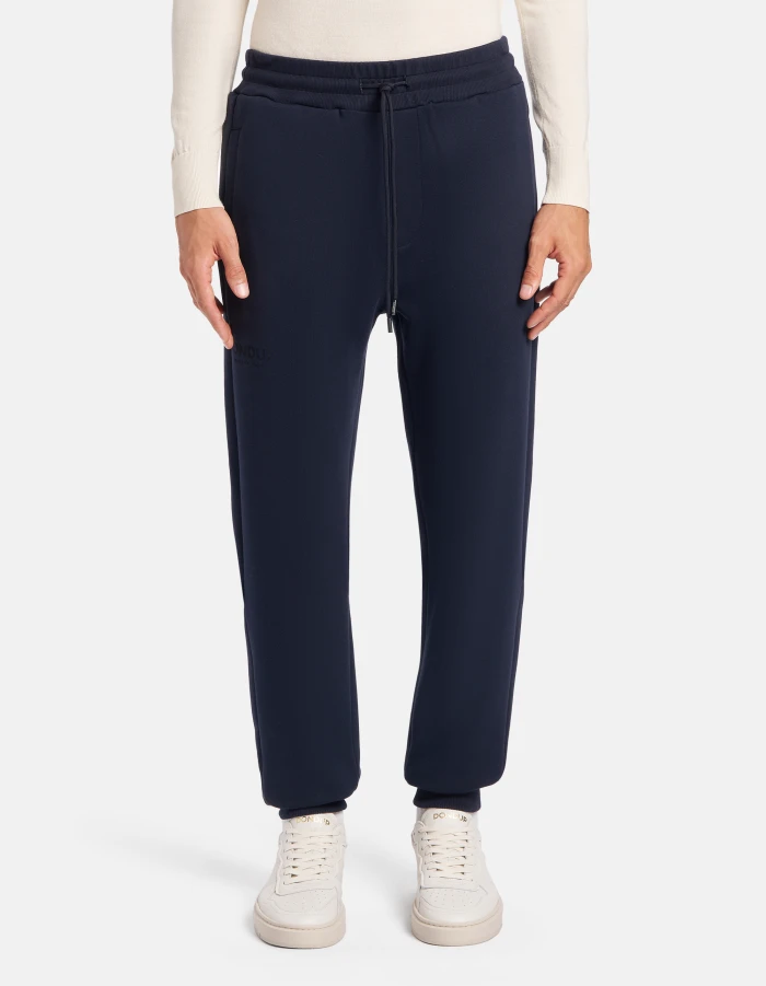 Regular-fit joggers with elasticated drawstring waist. Logo print on right leg. Cotton fleece. Dondup logo. Made in Italy