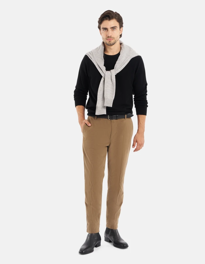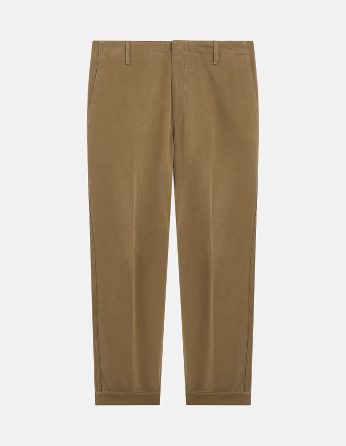 Zyan carrot-fit chino trousers, regular waist, welt pockets at the back. Velour gabardine. Dondup logo. Made in Italy