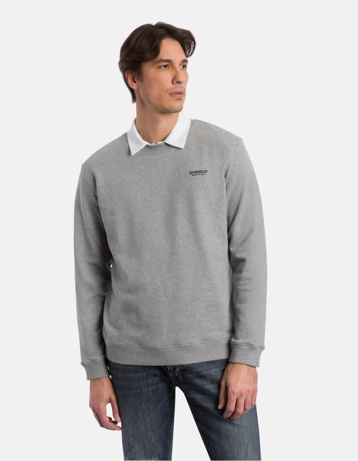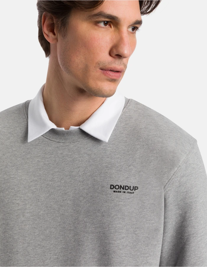 Regular-fit crew-neck sweatshirt with long sleeves and logo print on the left chest. Cotton fleece. Dondup logo. Made in Italy