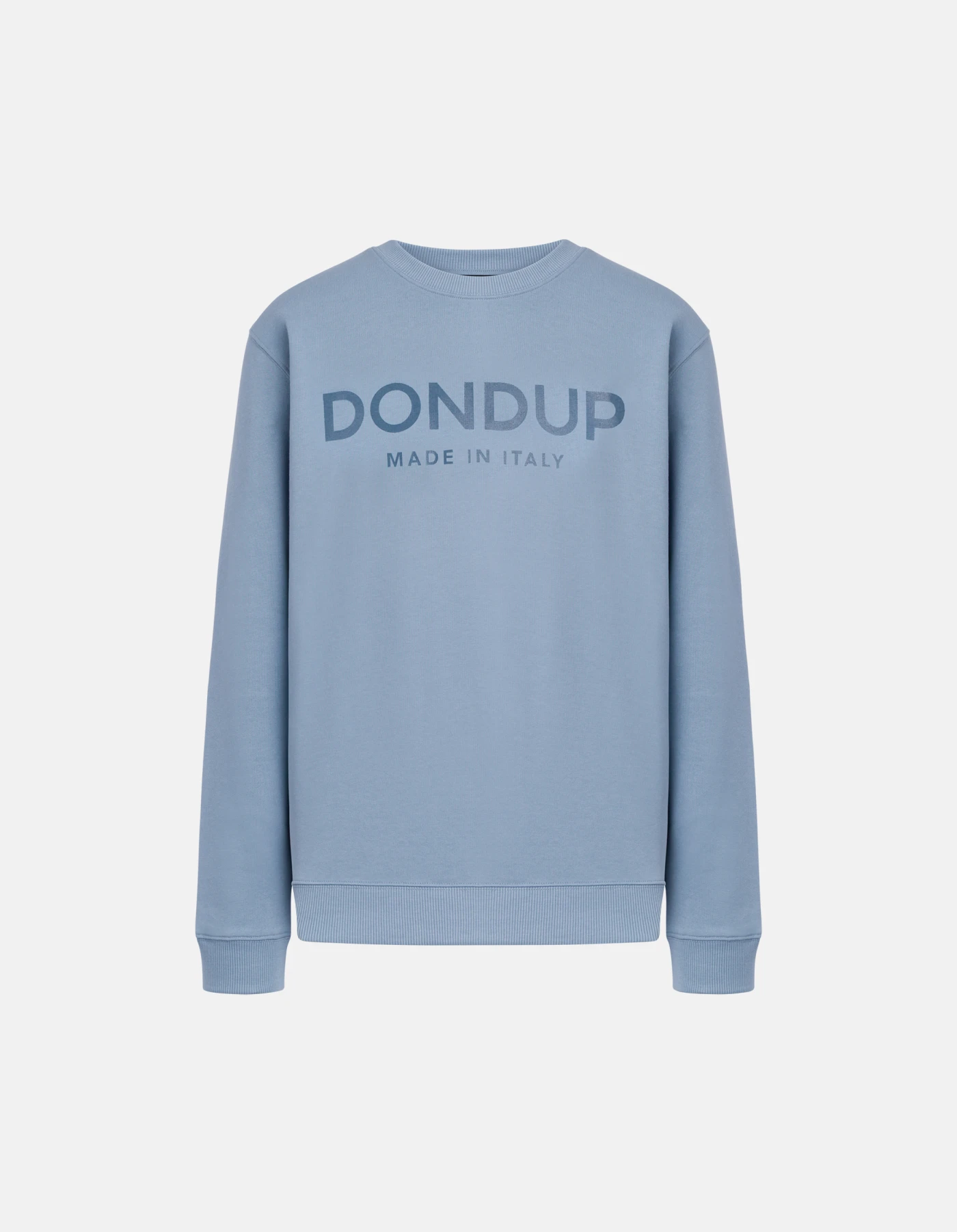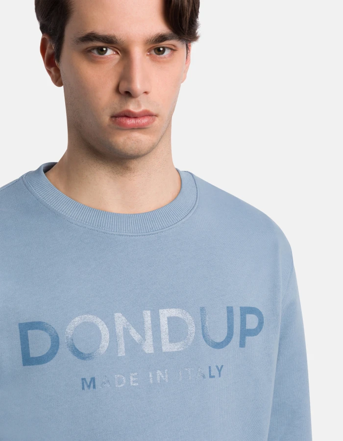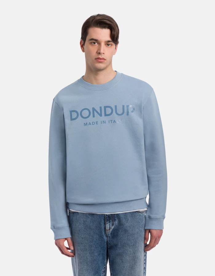 Regular-fit crew-neck sweatshirt with long sleeves and shiny tonal logo print on the chest. Cotton fleece. Dondup logo. Made in Italy