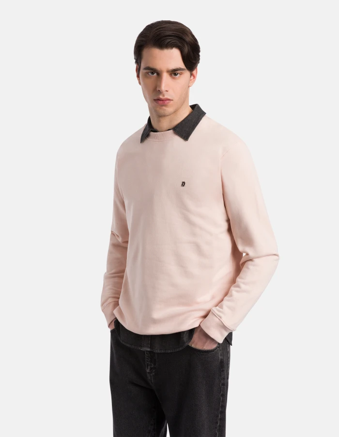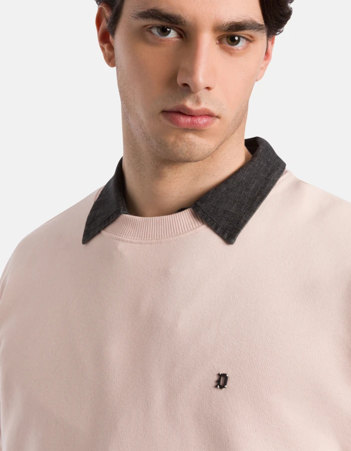 Regular-fit crew-neck sweatshirt with long sleeves with ribbing and D logo applied on the left chest. Cotton fleece. Dondup logo. Made in Italy