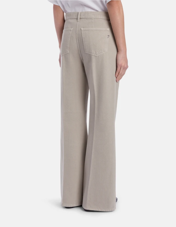 Amely wide-leg trousers, regular waist, fatigue pockets on the front. 10 1/4 oz bluesign APPROVED rigid bull denim. Garment-dyed. Dondup logo. Made in Italy